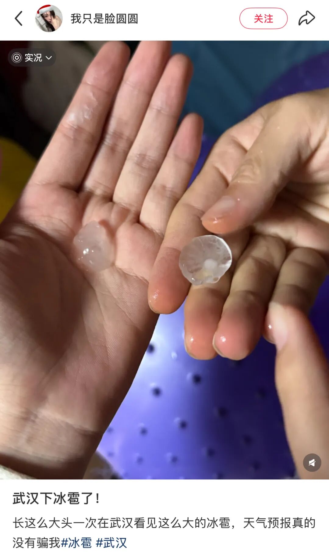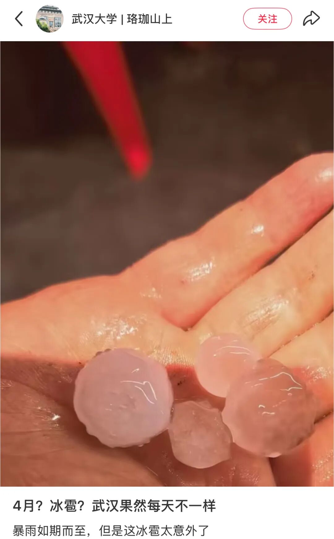 “武汉四月下冰雹了”等天气话题登上热搜。