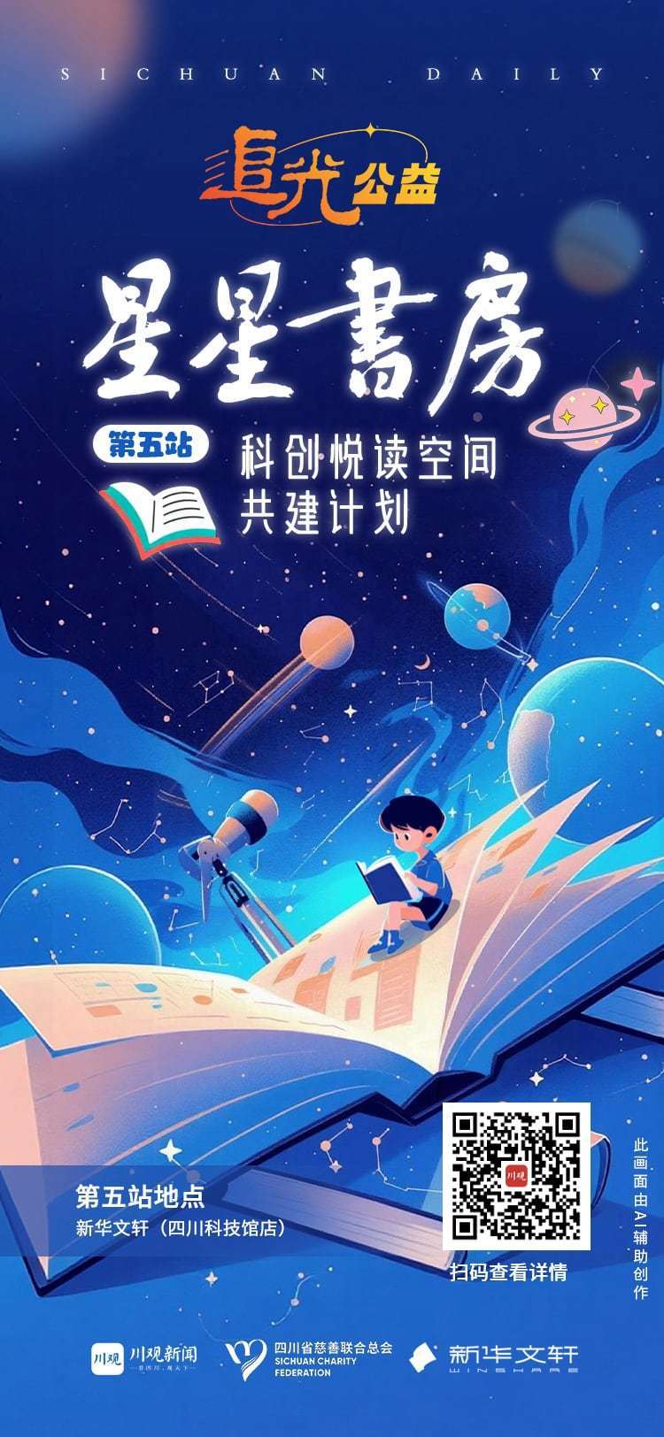 4月10日,由川观新闻、四川省慈善联合总会联合发起的“星星书房 —— 儿童爱心阅读空间共建计划”启动第五站建设。我们将携手新华文轩,并诚挚邀请广大爱心单位和个人,以“阅读+科普”的全新模式,拓展公益边界,让知识的光芒与科技的力量交织,共同为更多孩子照亮通往未来的探索之路。