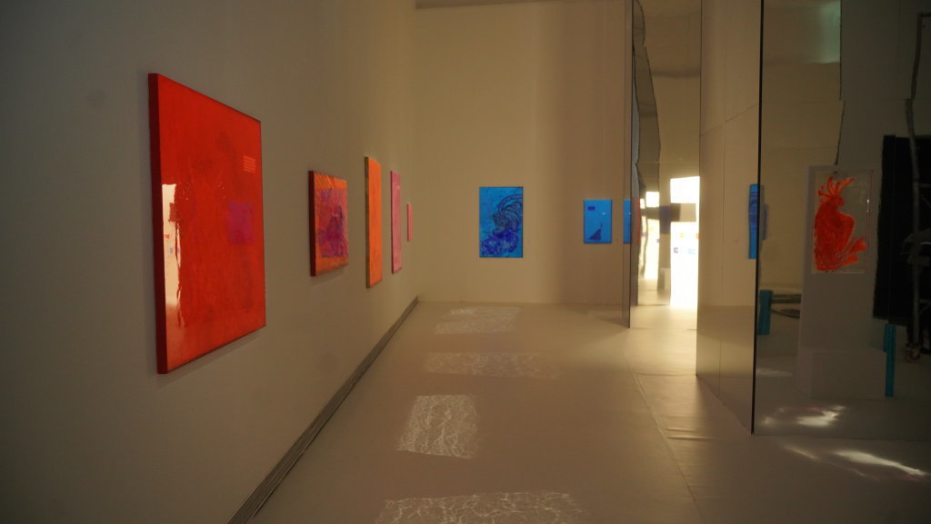 此次展览是蒋友柏首次以“单色”为主导的专题艺术呈现,共展出30余件全新创作的作品。老虎、大熊猫、龙等极具东方文化标识的动物形象,既是创作核心,也是艺术家最为钟爱的创作题材。蒋友柏在创作过程中,大胆融合钻石粉、汽车烤漆、亚克力、树脂等多元工业媒材,以极简的单一色调排除繁杂的视觉干扰,使作品呈现出坚固光滑的独特质感,甚至允许观众随意触摸。从不同角度看,作品能够折射出各异的光泽,地面会投射出灵动的水波纹,让看似简约的单色表达蕴含丰富的层次。每幅作品都搭配了艺术家原创的英文题诗,中文内容则标注在展签之上。这一设计成为他融汇东西方文化与审美的独特探索,也让观众能够从画面中感受“减法艺术”背后的万象生机。