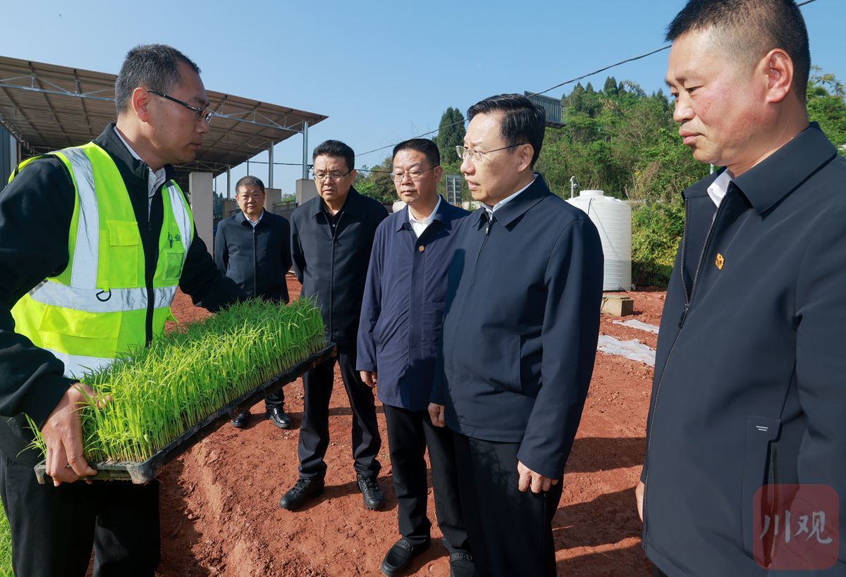 2026年4月9日,省委书记、省人大常委会主任王晓晖到乐山市现代农事综合服务中心调研,在育秧基地与农技人员交流,了解自动化育秧等情况。