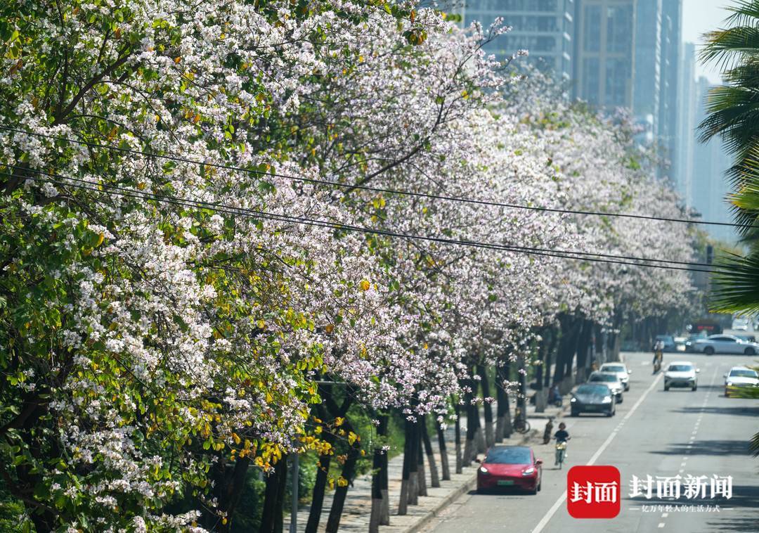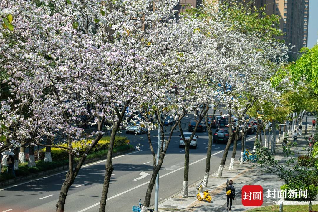 4月9日,成都大源中央公园附近,街头盛开的羊蹄甲。