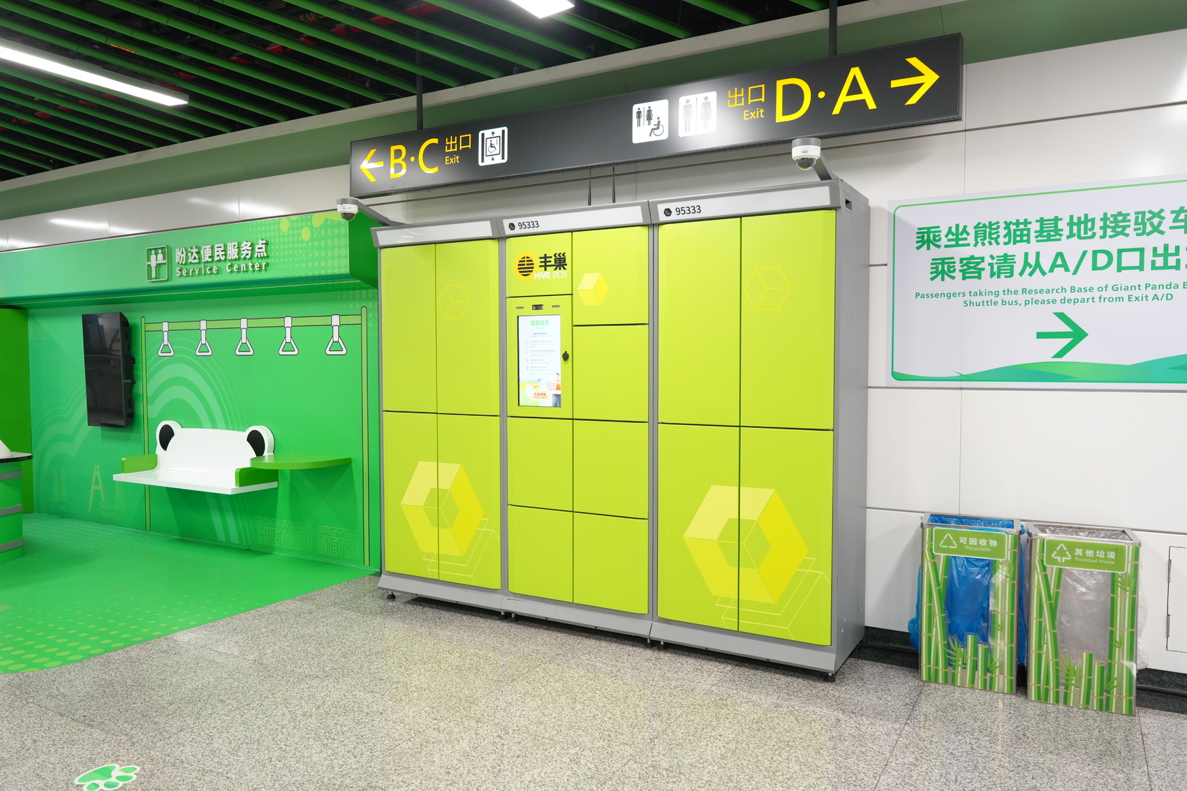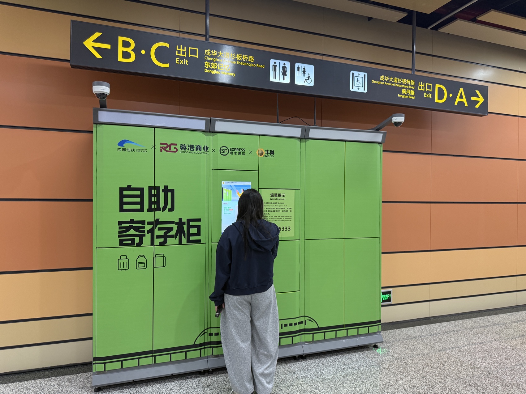 成都地铁熊猫大道站行李寄存柜。