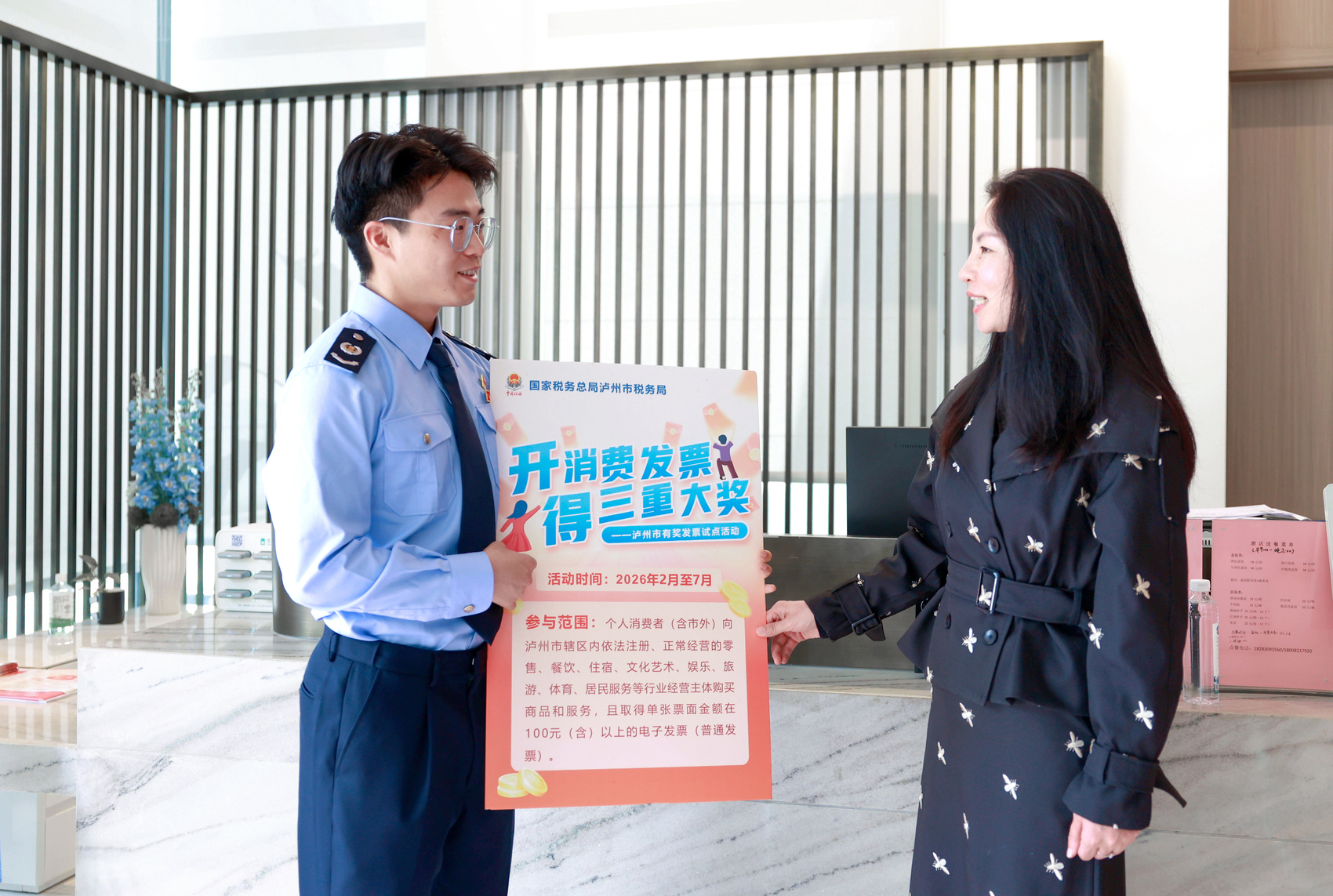 消费者主动索票,既维护了自身合法权益,更倒逼商家依法开票、诚信纳税,有效遏制了隐瞒收入、逃税漏税等违法行为。为保障活动公平公正、红利精准直达,泸州税务依托12366纳税缴费服务热线,畅通有奖发票咨询与应开票未开票线索受理渠道,实现接诉即办、闭环流转;会同商务、财政等部门,对参与活动的发票严格审核校验,依法依规严厉查处虚开、伪造发票、恶意冲红等套取奖金的违法违规行为,全力构建“消费者主动索票、商家规范开票、税务精准监管”的良性循环。