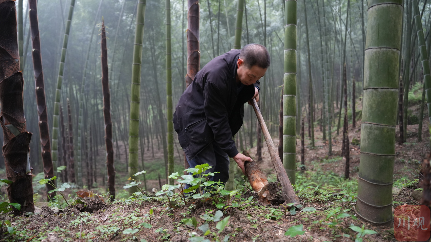 博望村村民在竹林间挖笋
