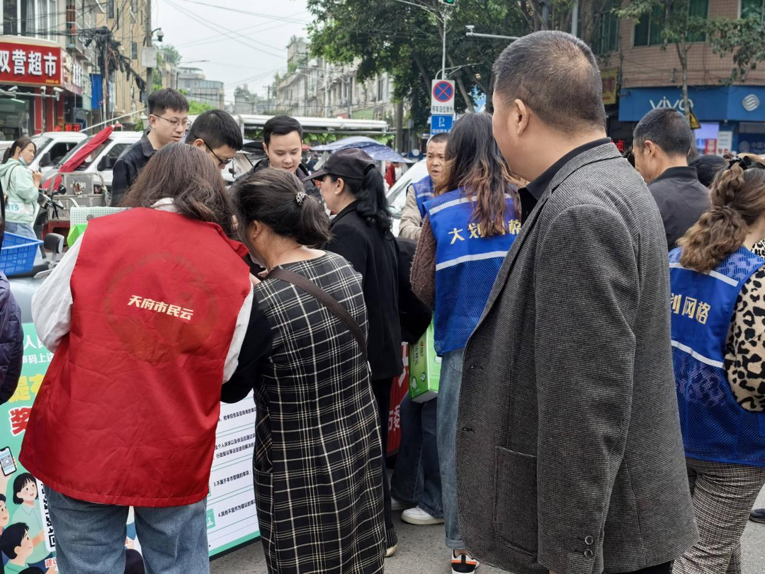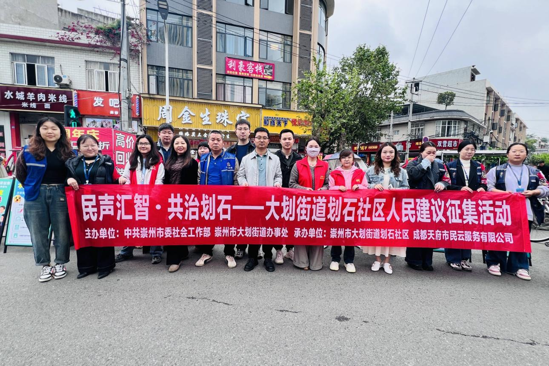 为畅通民意表达渠道,深化基层共建共治共享,4月8日,由中共成都市崇州市委社会工作部、崇州市大划街道办事处主办,大划街道划石社区、成都天府市民云服务有限公司承办的“民声汇智・共治划石”人民建议征集活动,在大划综合市场顺利开展。活动创新联动国家安全、禁毒、防电诈宣传工作,以“安全宣传+民意征集”的融合模式,吸引辖区居民踊跃参与,现场成功收集便民服务、公共设施、交通出行等领域有效民生建议30余条,切实让民声民意成为基层治理的“源头活水”。