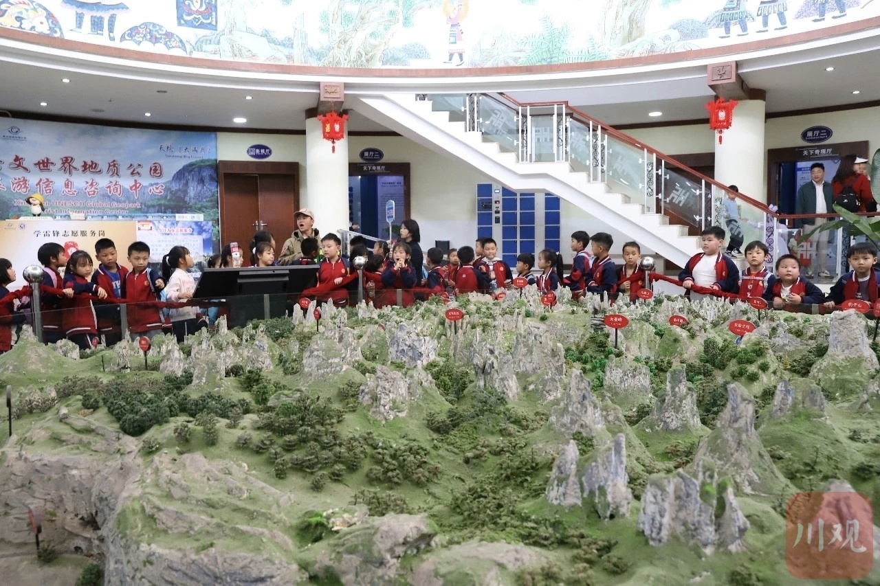 在蜀南竹海,数千名学子齐聚一堂,开启趣味十足的自然研学之旅,假期间香港学子、外国友人也来了,让竹海的春天“热”了起来;在兴文石海,学子们穿梭奇幻溶洞,走进苗王宫、僰寨,深入天坑、溶洞实地勘探,探寻地质奥秘……