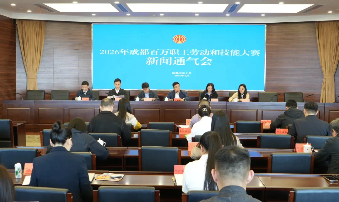 4月9日,成都市总工会召开2026年成都百万职工劳动和技能大赛新闻通气会,通报大赛整体安排、解读赛事背景,相关区(市)县、市产业工会、企业工会代表现场发言,详解赛事筹备及推进举措。