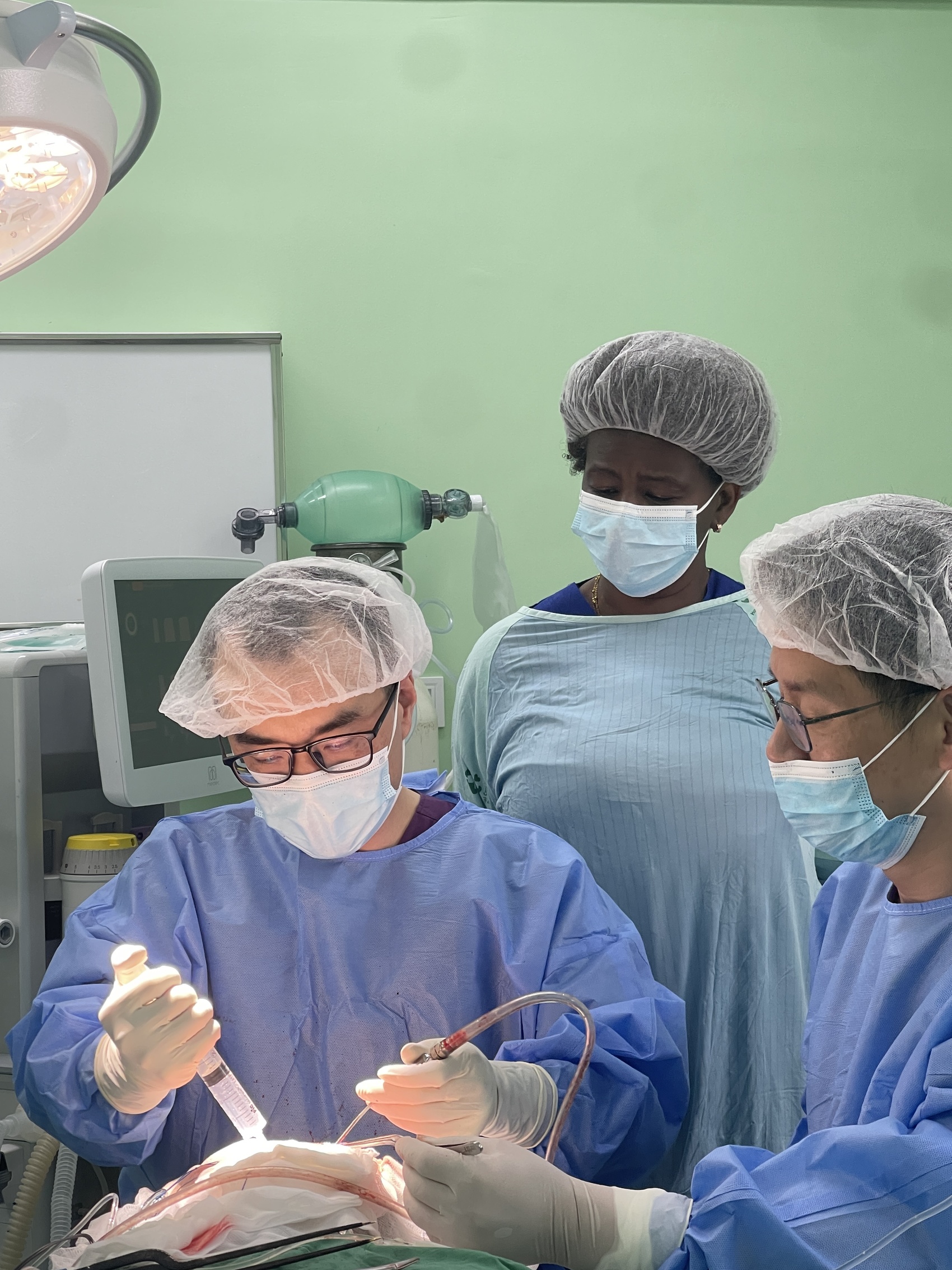 除了日常临床工作,何森还利用周末参加医疗队组织的义诊,先后为当地百姓和在佛华人提供多次诊疗服务。同时,他向资阳市中心医院申请,争取为普拉亚中心医院免费提供部分操作设备,帮助在当地推广神经内镜和显微技术等微创理念,努力为佛得角留下一支“带不走的医疗队”。