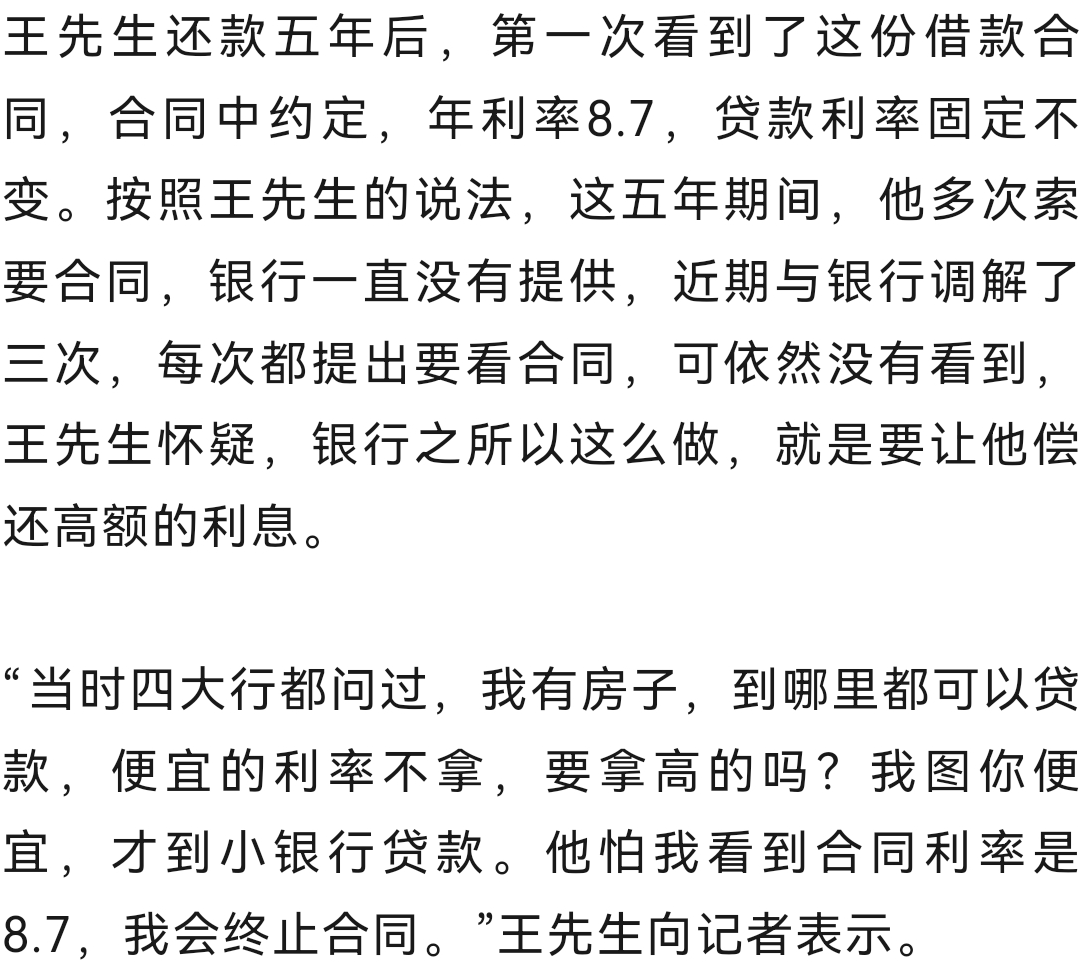 王先生表示:“也问过其他银行,当时市场上的年利率,大概5.8到4.8之间,中介公司介绍,说常熟农商银行便宜,年利率3.8。”