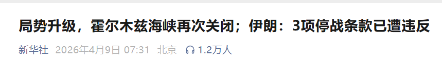 新华社德黑兰4月8日电 据伊朗新闻电视台8日报道,霍尔木兹海峡已完全关闭,一些油轮被迫返航。另据伊朗塔斯尼姆通讯社当天报道,仍有大量船舶在霍尔木兹海峡附近海域滞留。