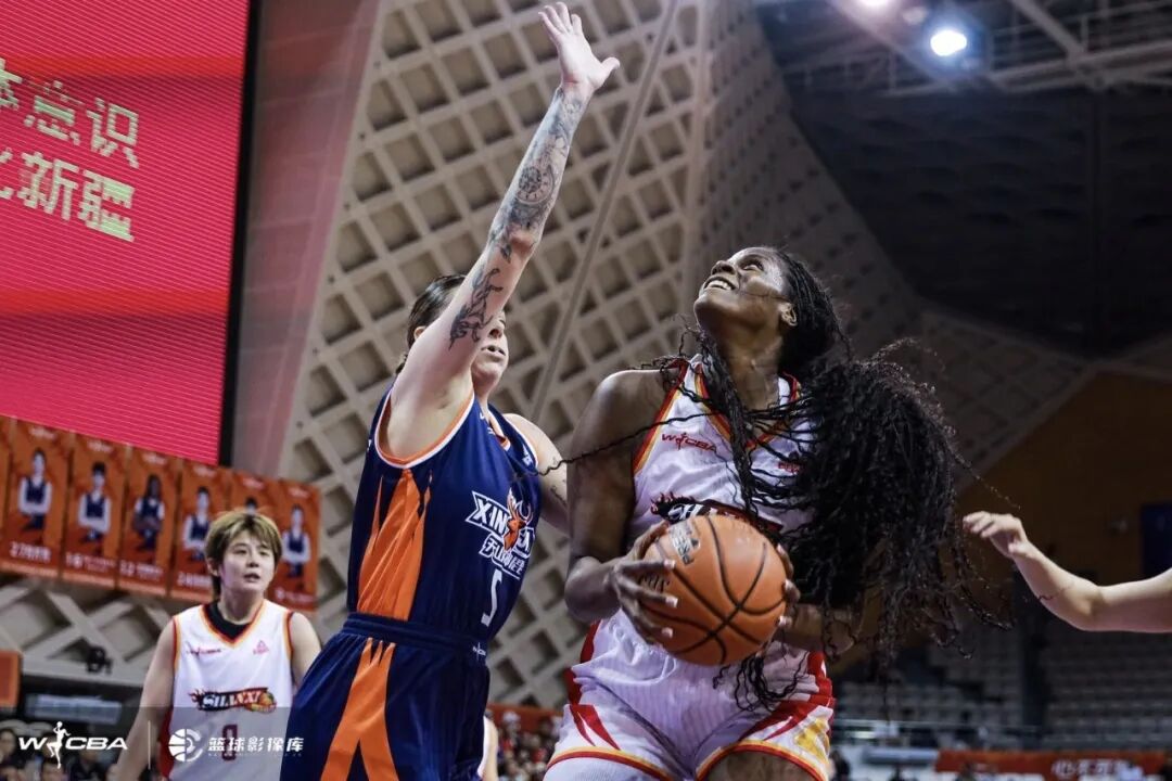 背水一战的新疆队,随后凭借武桐桐和王雪朦两位明星球员的个人进攻能力,一度将分差缩小至1分。山西女篮随后提升防守强度,打出快速反击,再次将领先优势扩大至两位数。