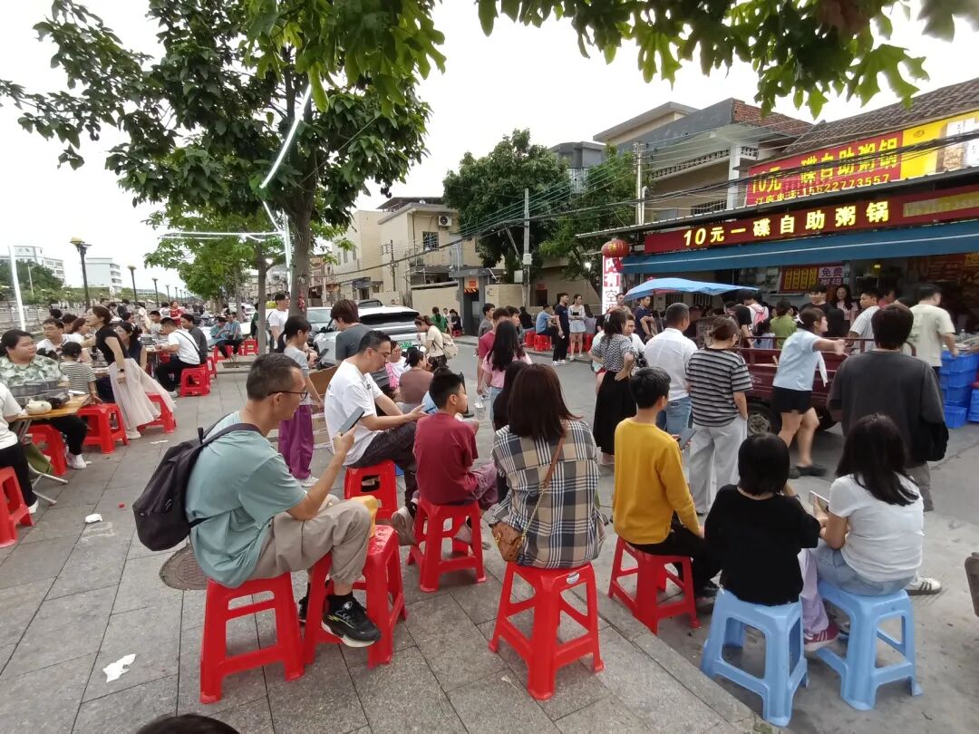 一位街坊说:“晚市17:30开餐,15:00门口就开始排长龙,队伍拐了几个弯,直接排了半条街!”最近,这一场面已经成为北流食街的常态。店内人头涌涌、座无虚席,添粥加料全靠“挤”过去,有人笑称:“排队排到腿软,吃上全靠缘分。”