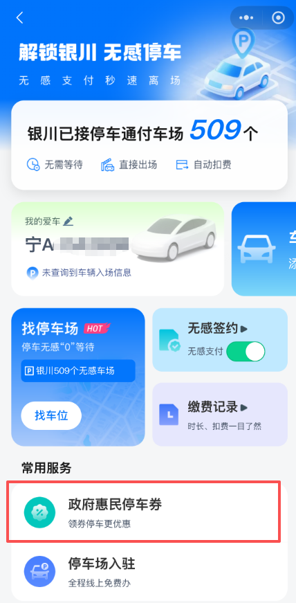 银川市停车通付公共服务平台
