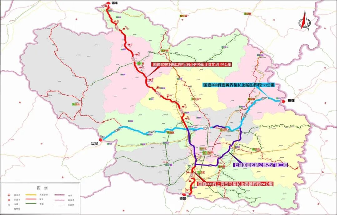 该项目是长治市规划“一纵一横一环“一级公路国道主骨架中“一纵”的主要组成部分,位于长治市北部,路线沿既有公路拓宽改造,途经长治市武乡县、沁县、襄垣县和屯留区境内,按双向四车道一级公路标准建设。路线全长108公里,概算投资54.59亿元。