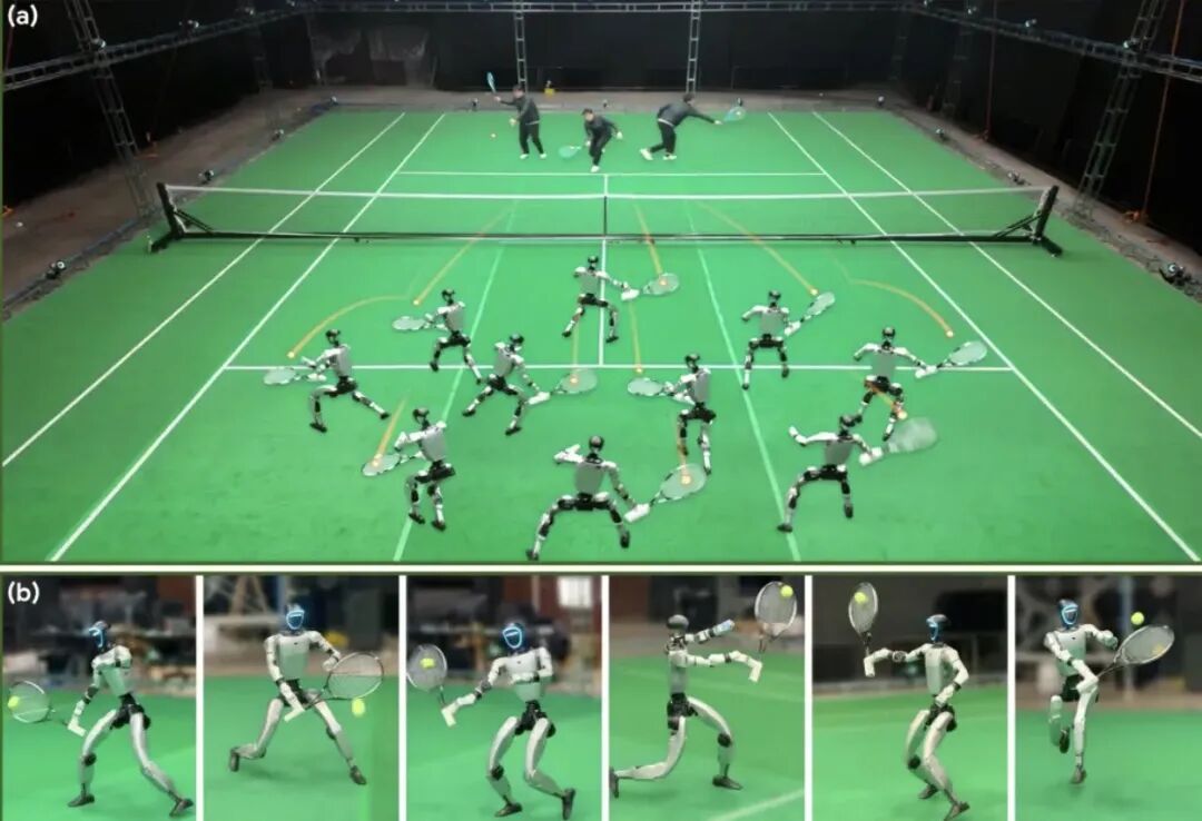 网球运动堪称人形机器人的“终极考场”——需要以每秒数米的速度在球场上来回奔跑,对时速几十公里的来球做出反应,并在几毫秒的球拍接触时间内完成击球。传统人形机器人受限于预编程模式和对高质量动作捕捉数据的依赖,难以应对如此随机、多变的对抗环境。