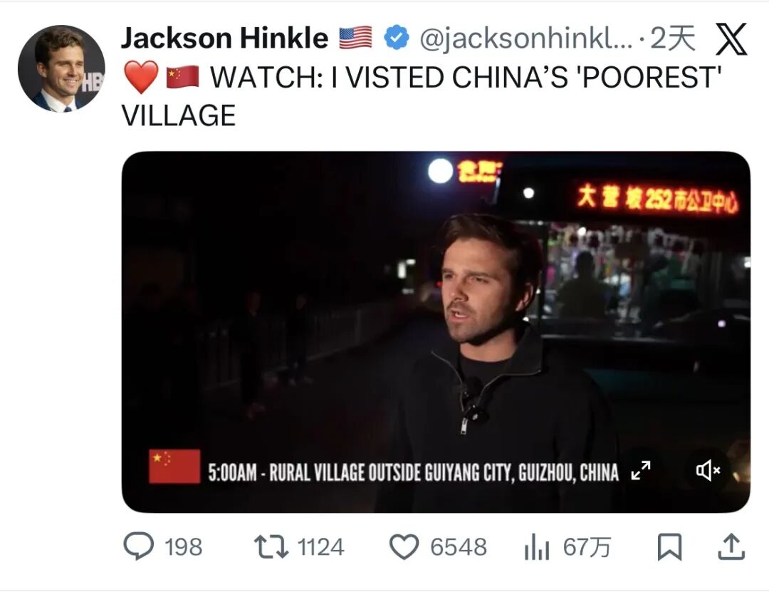 Jackson Hinkle在海外平台X发布体验vlog