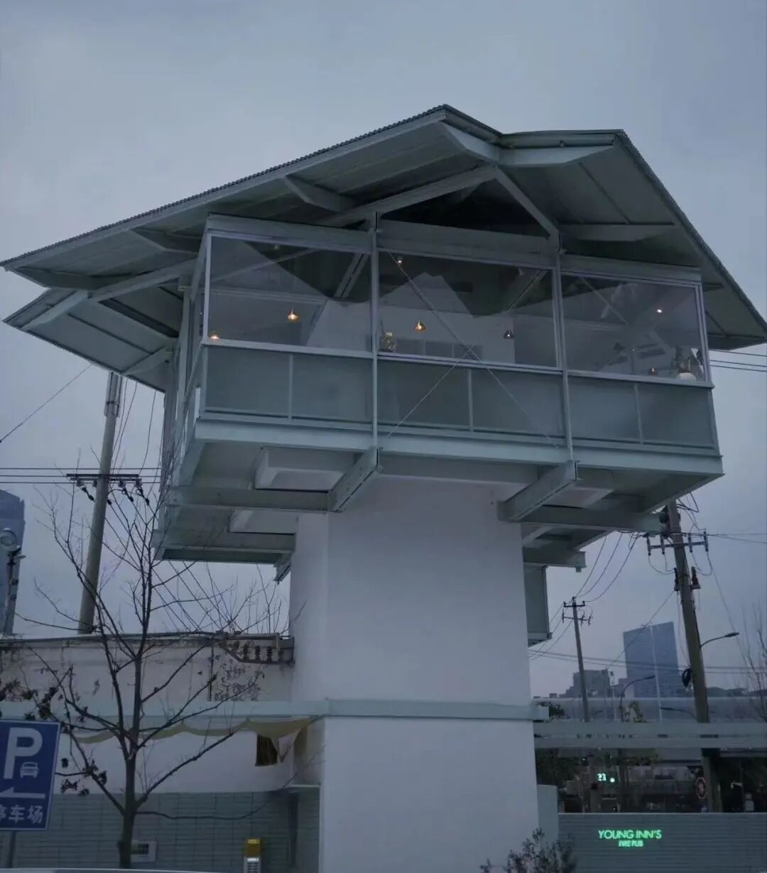 远远望去,这座书店高高矗立在园区西北角落,与周边建筑形成鲜明对比,格外惹眼。