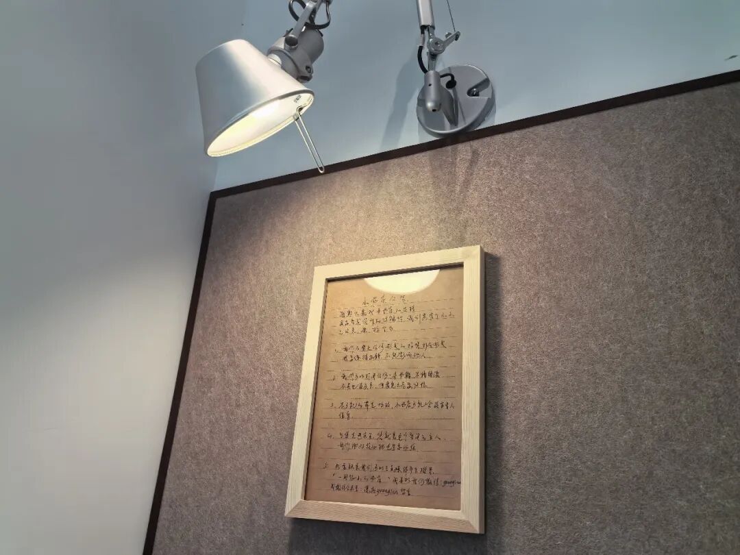 图书室负责人胡涛为前来“治愈”的顾客写下的“小店共约”。