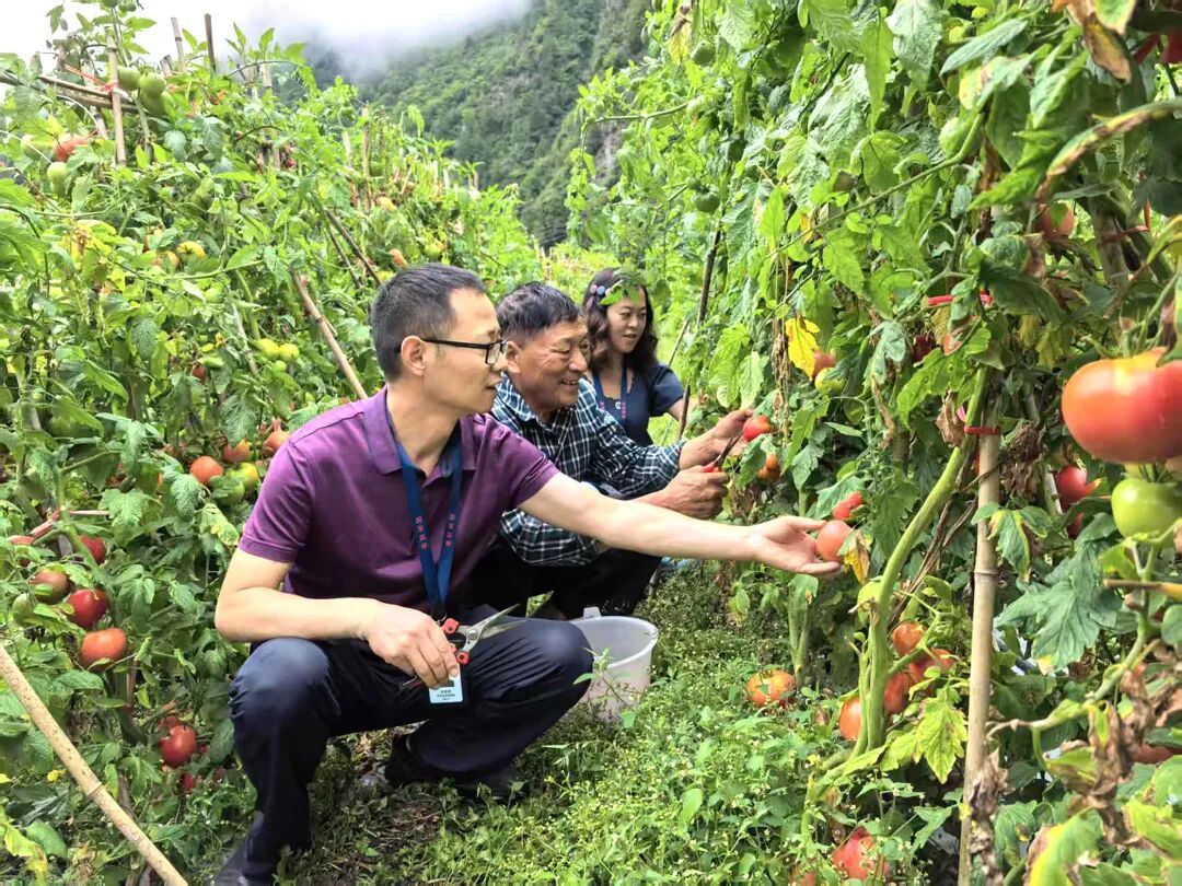 阿坝州理县纪委监委干部在朴头镇高原有机番茄基地产业收集群众诉求。(杨玲/摄)