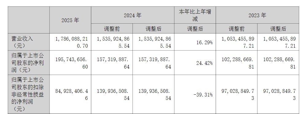账面业绩持续增长背后,运机集团扣非净利润出现明显下滑值得关注。年报显示,2025年公司实现扣非净利润8492.84万元,同比下降39.31%。扣非净利润的明显下滑,主要受大额非经常性损益影响。财务数据显示,2025年公司非经常性损益高达1.11亿元,同比增长超过5倍之多,占归母净利润比例亦高达56.28%。