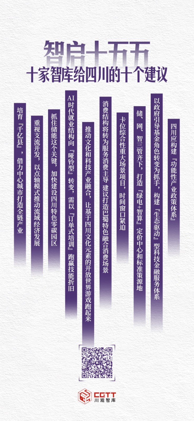 从1月开始,川观智库持续重磅推出《智启“十五五”·十家智库给四川的十个建议》系列智库产品,聚焦四川“十五五”开局破题相关重点工作问计专家学者。