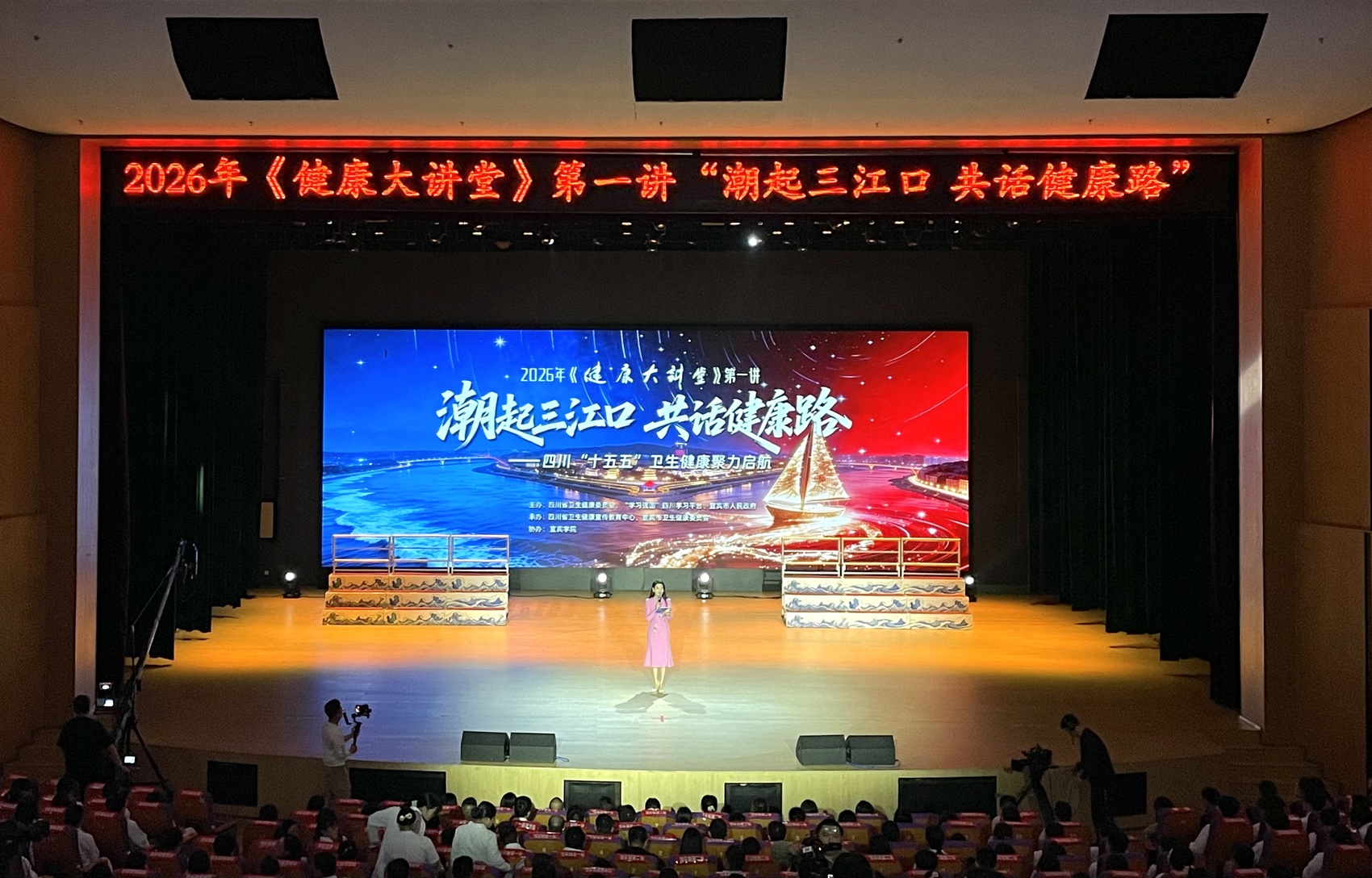4月8日,由四川省卫生健康委员会、宜宾市人民政府等单位主办,四川省卫生健康宣传教育中心、宜宾市卫生健康委员会承办的2026年《健康大讲堂》第一讲“潮起三江口 共话健康路”在宜宾学院开讲。