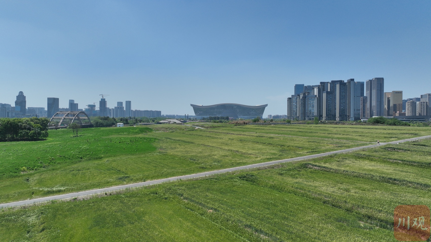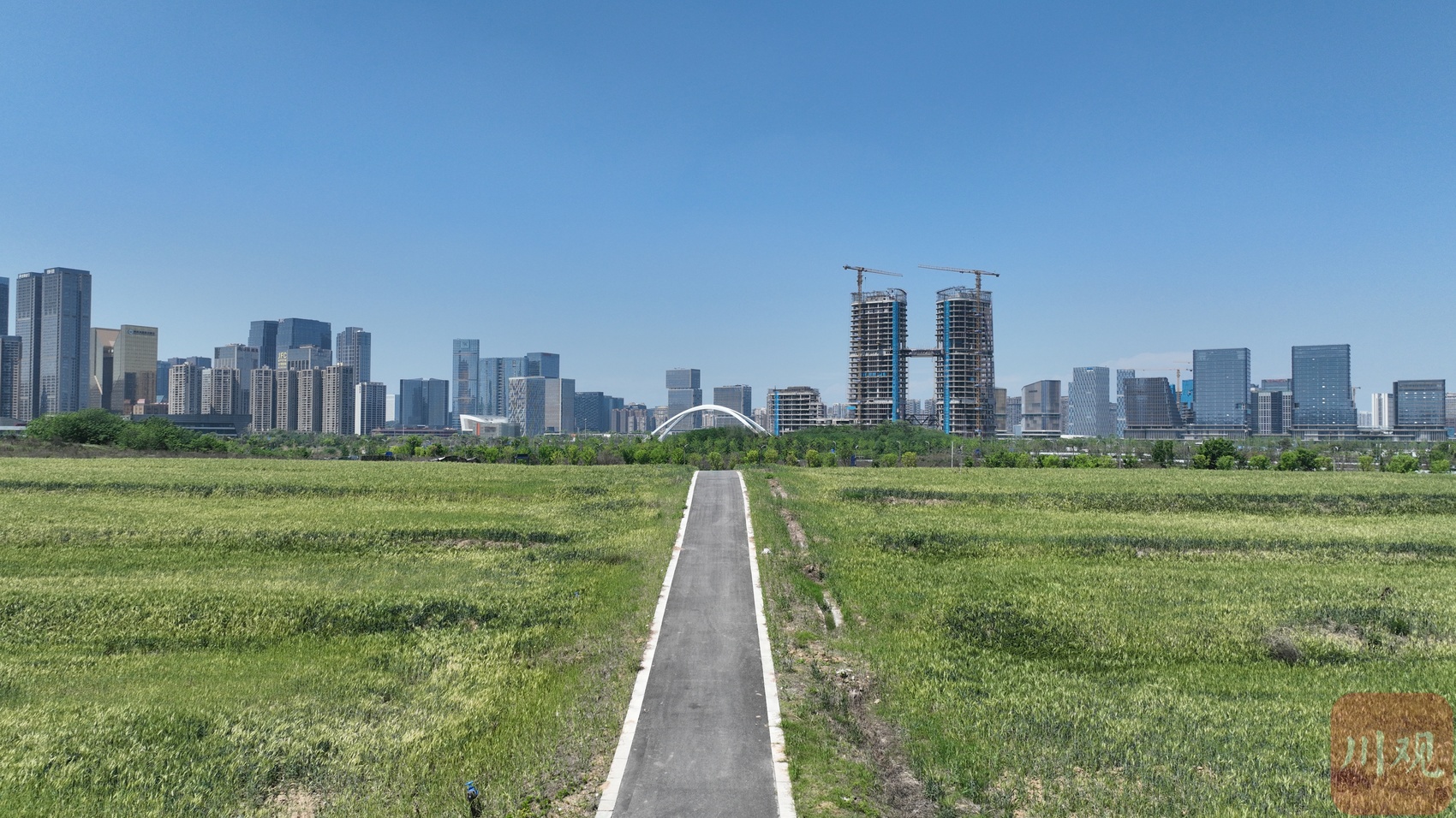 4月9日,位于成都高新区复地金融岛东岸的环城生态区麦田,正值清新治愈的观赏时节。