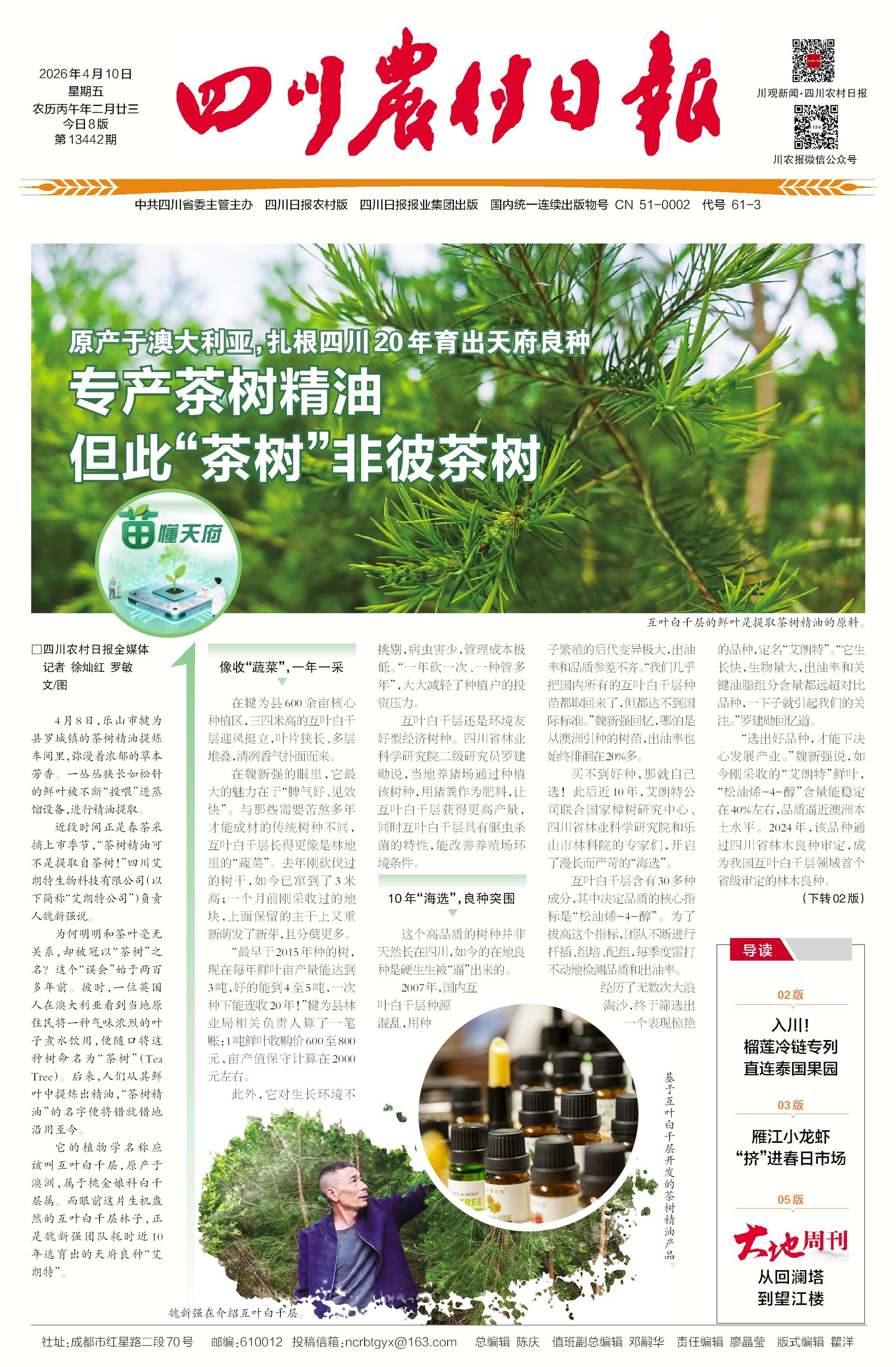 你知道吗?茶树精油,其实跟茶叶没半毛钱关系,它来自一种叫“互叶白千层”的澳洲树种,目前在乐山犍为安了家。