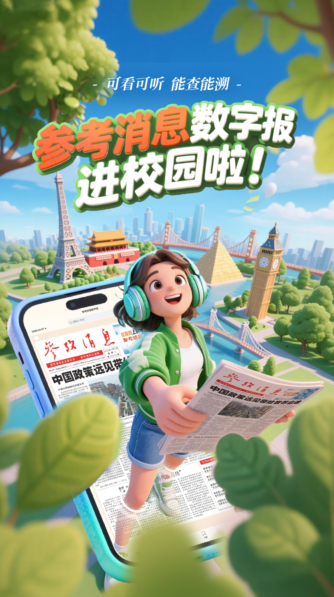 《参考消息》数字报“进校园”系列公益活动,即日起面向全国院校开放合作通道。我们期待与各院校携手,将权威资讯、深度解读、数字阅读服务引入校园,服务师生,共建校园优质信息平台。
