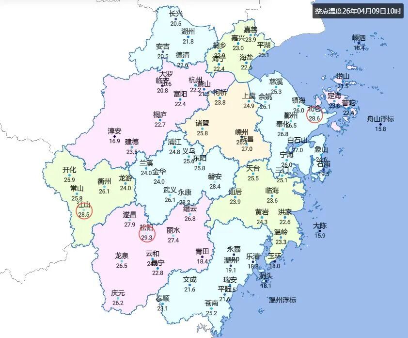 清晨出门,暖意已扑面而来,最低气温同步“飙高”,我省大部在14-19℃之间,其中诸暨达19.9℃。升温速度堪比“小火箭”,10点,不少地方已跨上25℃线,其中松阳高达29.3℃。