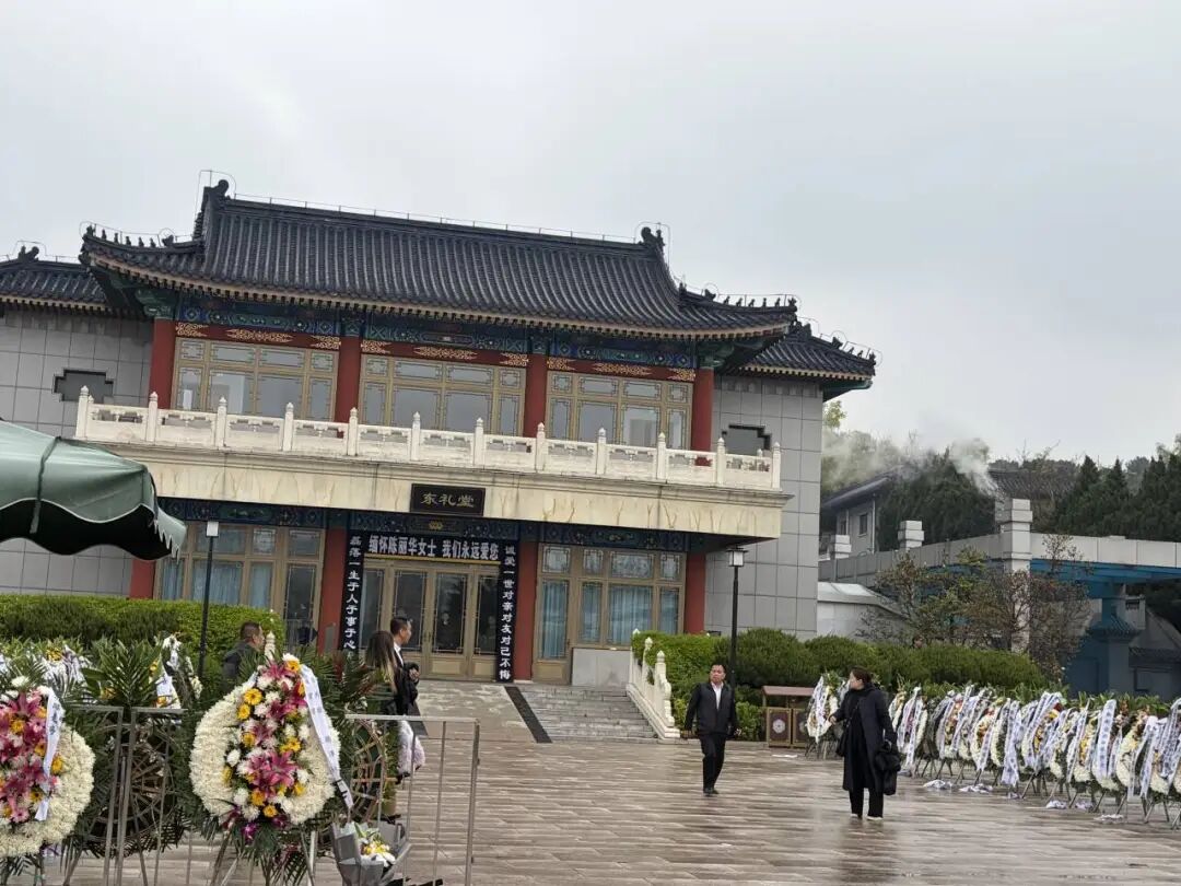 9日上午,北京天空阴沉,飘着蒙蒙细雨,但东礼堂外已排起了长队。不少市民撑起雨伞,冒雨前来送别这位陈丽华女士最后一程。极目新闻记者注意到,东礼堂门前,悬挂着“缅怀陈丽华女士,我们永远爱您”的横幅;礼堂内,陈丽华女士生前的影像展示在正中,照片中的她神态慈祥、目光和蔼。