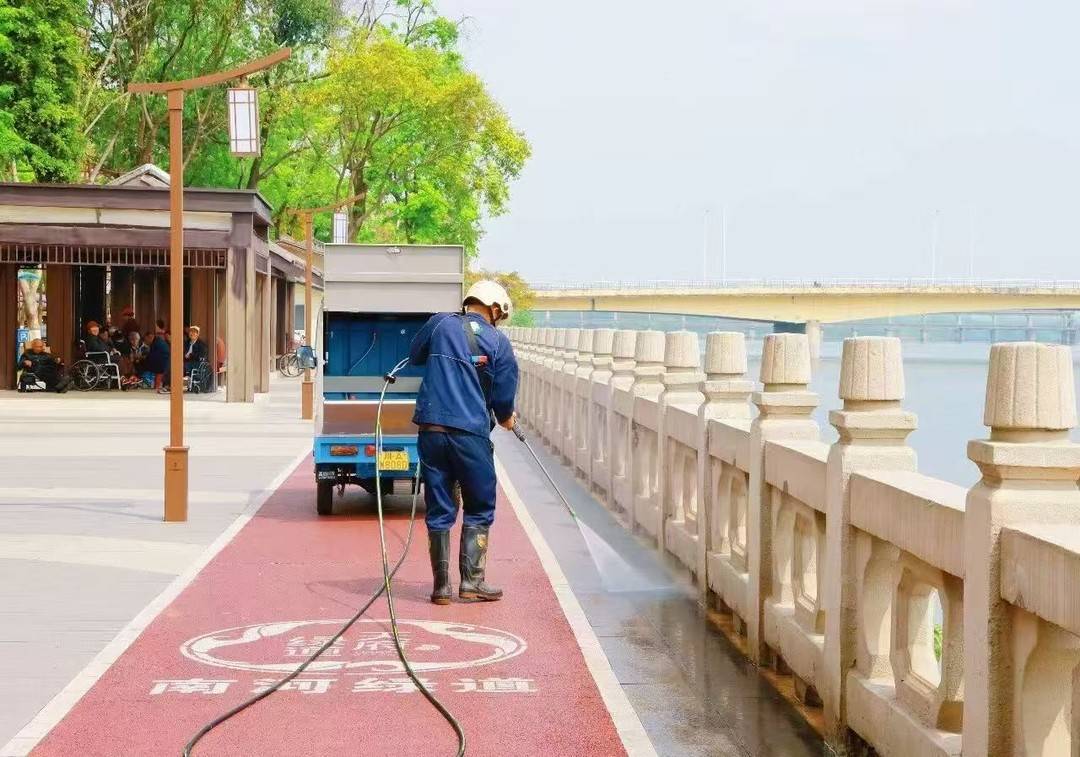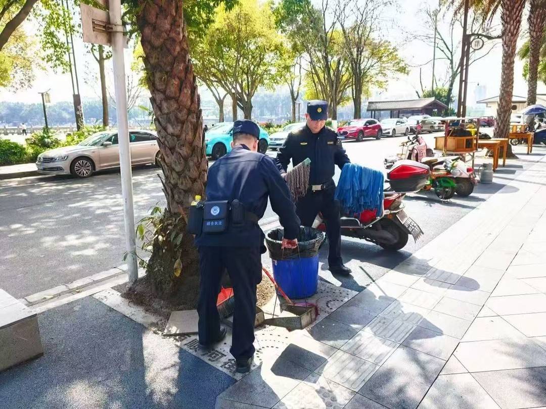 市政设施管护上,队员们对路面、井盖、护栏、公共座椅、照明设施等建立全周期巡查养护体系,发现破损立即上报、及时修复;同时严查损毁绿地绿植、违规张贴小广告、乱挂杂物等行为,保持建筑立面干净清爽。环境卫生方面,严格执行高标准清扫保洁,做到路面无积尘泥沙、无积水污渍,垃圾桶完好整洁、垃圾日产日清,真正实现“目之所及,洁净如新”。