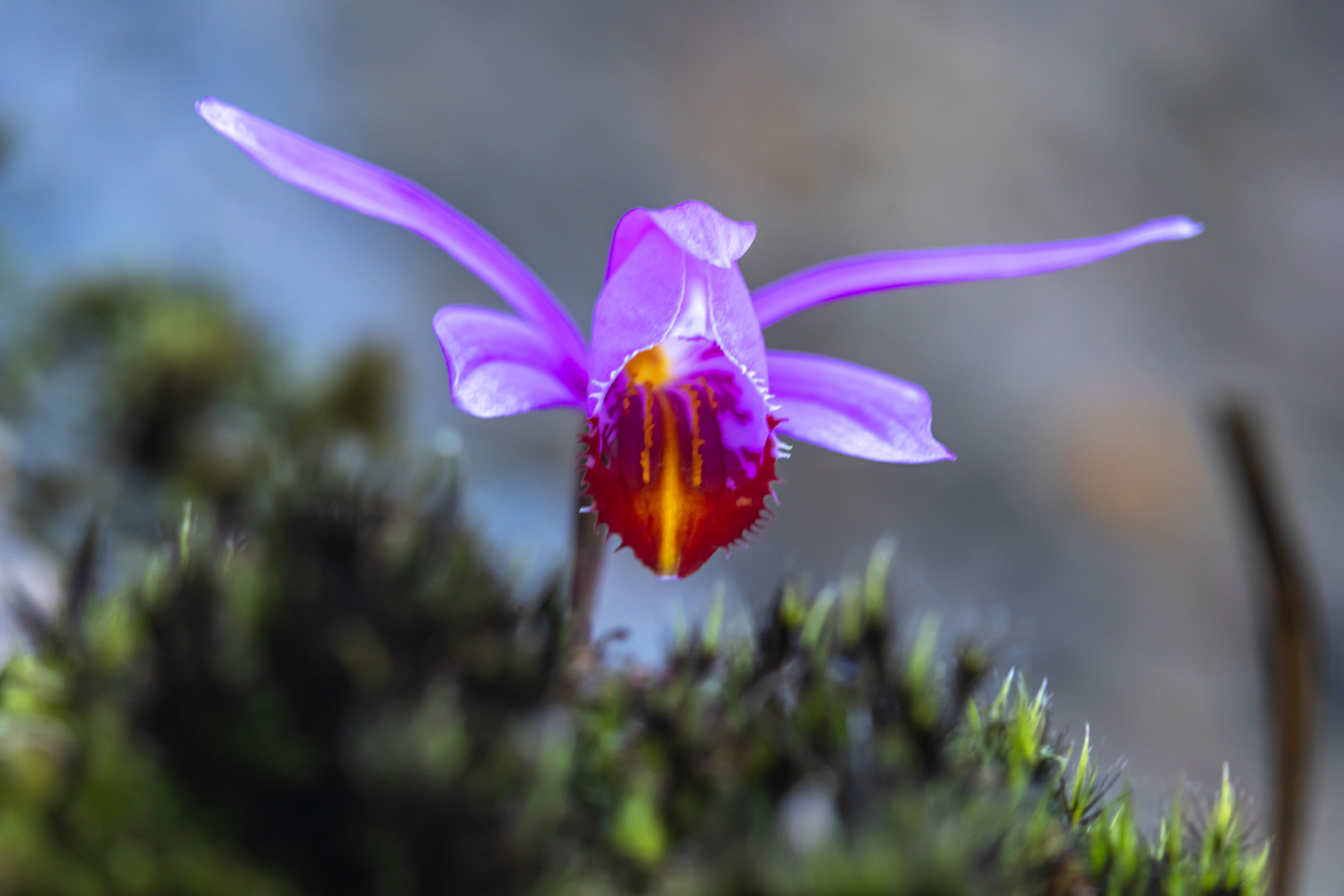 独蒜兰隶属于兰科,是多年生草本附生植物,因其储存营养的假鳞茎形如蒜头且花朵多单生而得名,主要分布于四川、陕西南部、广东北部、广西北部、贵州、西藏东南部等地。主要生长在常绿阔叶林下或灌木林缘腐殖质丰富的土壤中,海拔范围为900米—3600米。2021年,独蒜兰被列入《国家重点保护野生植物名录》,为国家二级保护野生植物。
