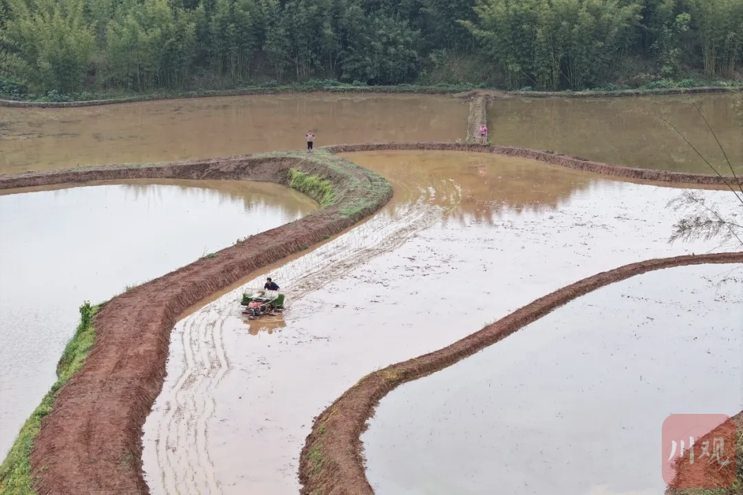 春耕时节,宜宾市长宁县老翁镇的田间地头一派生机勃勃。连日来,农户们抢抓农时,忙着水稻插秧、田间管护。与往年不同,今年这里的春耕“科技范”十足,无人机盘旋巡田、小型插秧机穿梭往来,插秧效率较传统人工提升10倍。