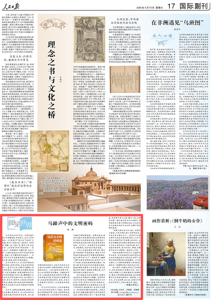 在文化符号之外,马还是串联起农耕与游牧、战争与贸易、生态与信仰的纽带——甚至可以说,马蹄声中藏着人类文明的密码。英国皇家亚洲事务学会会员、历史学者戴维·查费茨撰写的《马匹与文明的缔造》(见图,资料图片)今年年初由中信出版社刊行,该书融合人类学、考古学、遗传学、比较语言学的研究成果,超越王朝兴衰更迭的传统叙事,聚焦马匹在欧亚大陆文明演进中的重要作用。