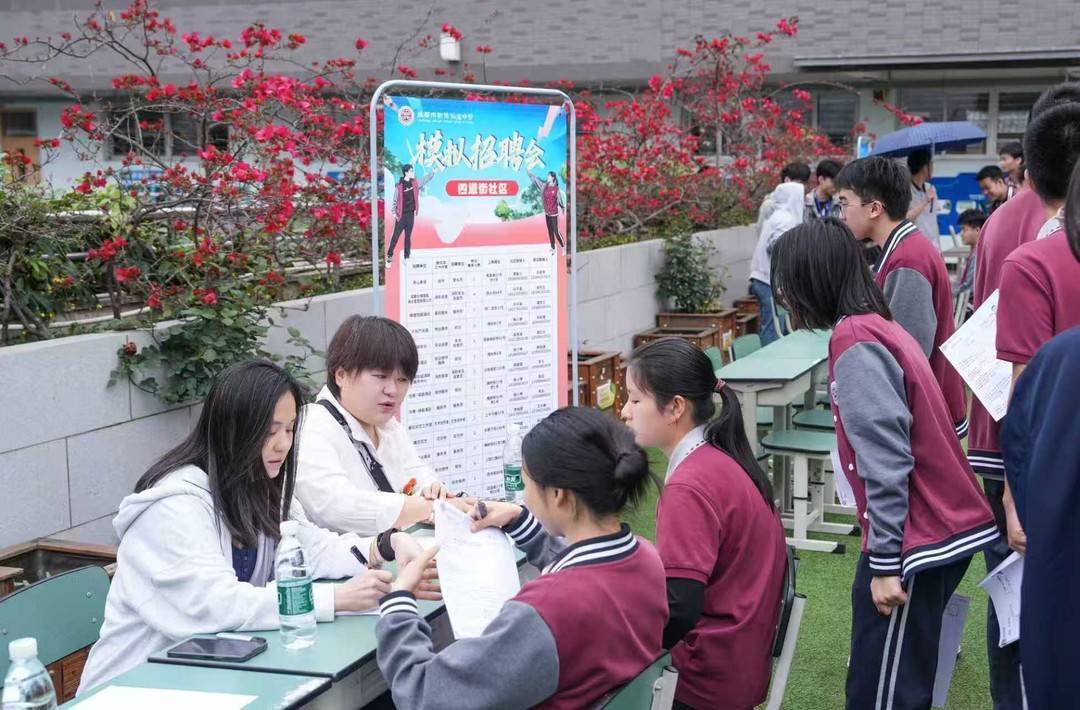 4月10日上午,“沉浸式职业微体验”活动招聘会在成都市树德协进中学举行,该校高二年级学生根据自己的兴趣和意愿,应聘相应岗位。街道统筹协调,各社区主动作为,精准对接辖区企业、事业单位、社会组织等60多家单位,提供了护士助理、花艺师、消防安全巡查员、网格员、人事档案专员、社区志愿者、烘焙师、摄影师等多领域岗位近400个,构建起覆盖企业类、事业单位类、技能类的多元岗位矩阵,为学生提供沉浸式、专业化的职业体验场景。来自高二八班的曾思琪同学应聘的是祠堂街社区保安岗位,“我觉得保安这个岗位很辛苦,但是可以与各种不同的人打交道,可以提升我的应急反应能力以及与人交流沟通的能力。”曾思琪说。