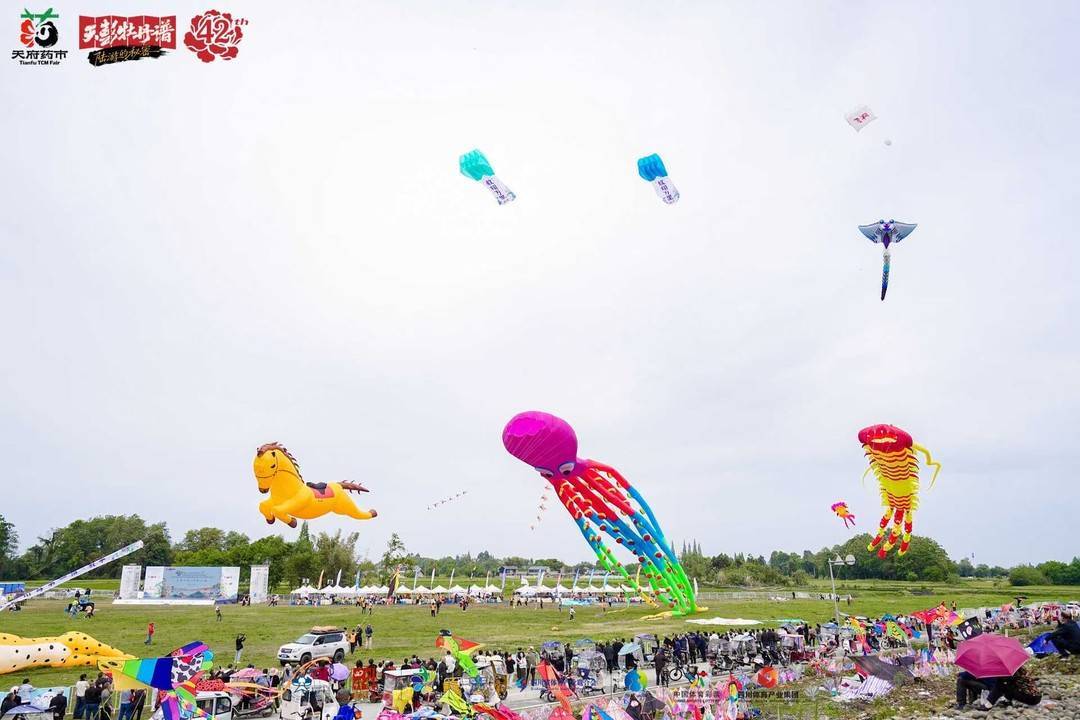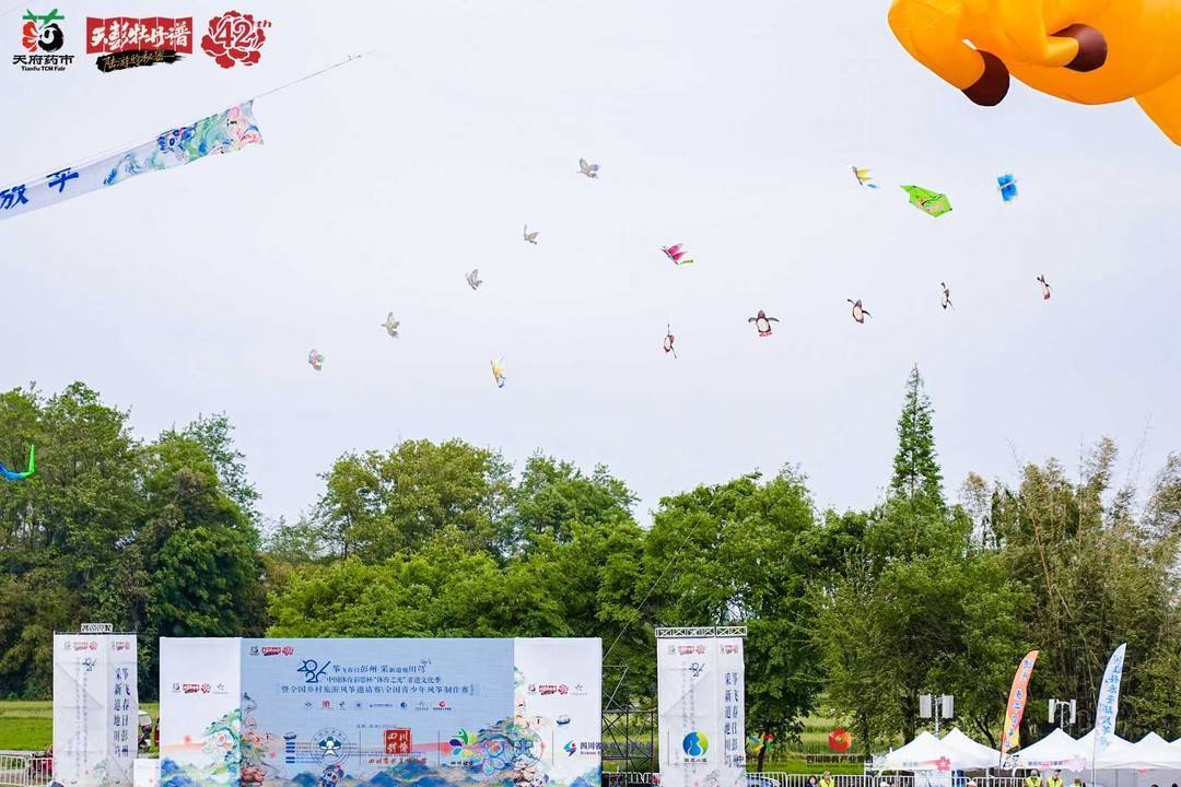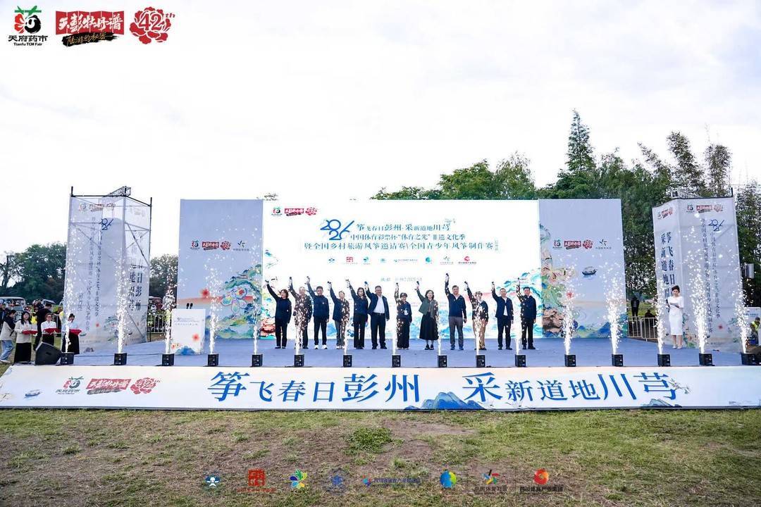 本次活动不仅是一场风筝竞技的盛会,更是一次体育文化赋能乡村振兴的生动实践。活动期间,配套举办的“天府药市川芎集”同步开市,彭州川芎鲜品、饮片等道地药材,以及本地农特产品、风筝IP文创、“风筝+非遗”联名产品等集中展销,既拓宽了本地特色产品的销售渠道,也让游客在逛市集、品特色的过程中,全方位了解彭州产业特色与文化底蕴。