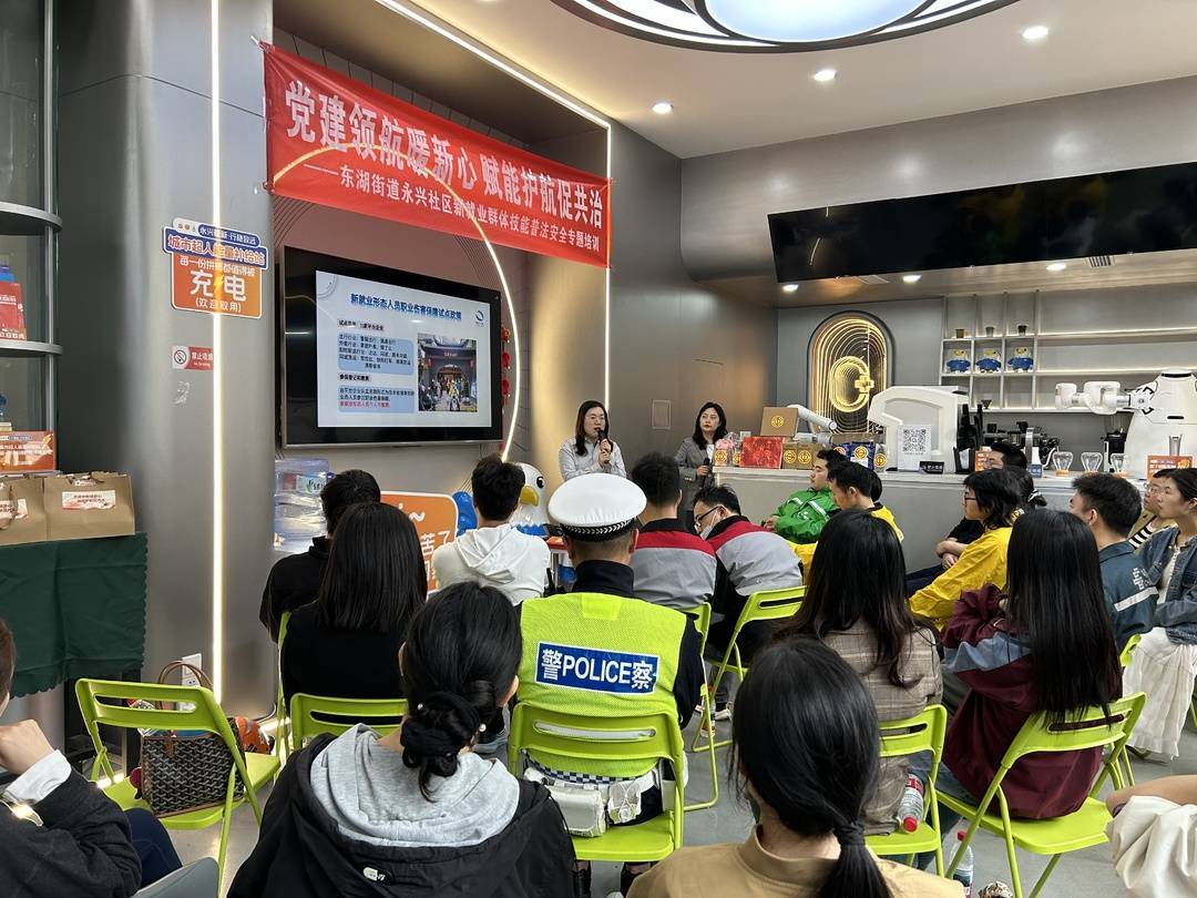 阵地建起来,服务跟上来。据社区介绍,永兴社区党委常态化开展“一月一活动”,截至目前已累计举办6场主题关怀活动,覆盖安全保障、权益维护、健康医疗、节日慰问、共治赋能等多个维度。“暖新护航·安全同行”开展安全知识宣讲,“新”有所护·权有所依邀请律师驻点解答法律问题,“医”路护航·健康同行和“永兴暖‘新’·义剪焕新”提供免费健康筛查、公益理发,元宵团圆宴等活动让异乡从业者感受家的温暖。