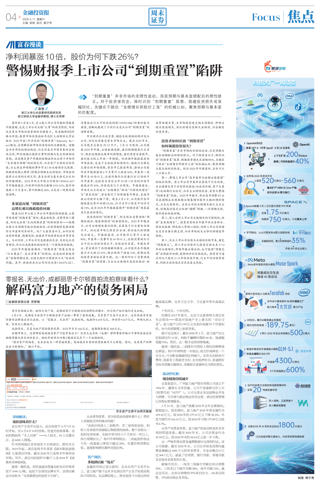 4月中下旬将迎来2026年一季报业绩密集披露期。一季报业绩较好的板块可能集中在科技类板块(如TMT、电子等)以及受价格上涨推动的板块(如有色金属、化工等),这些领域一季度业绩可能出现高增长,投资者可重点关注。