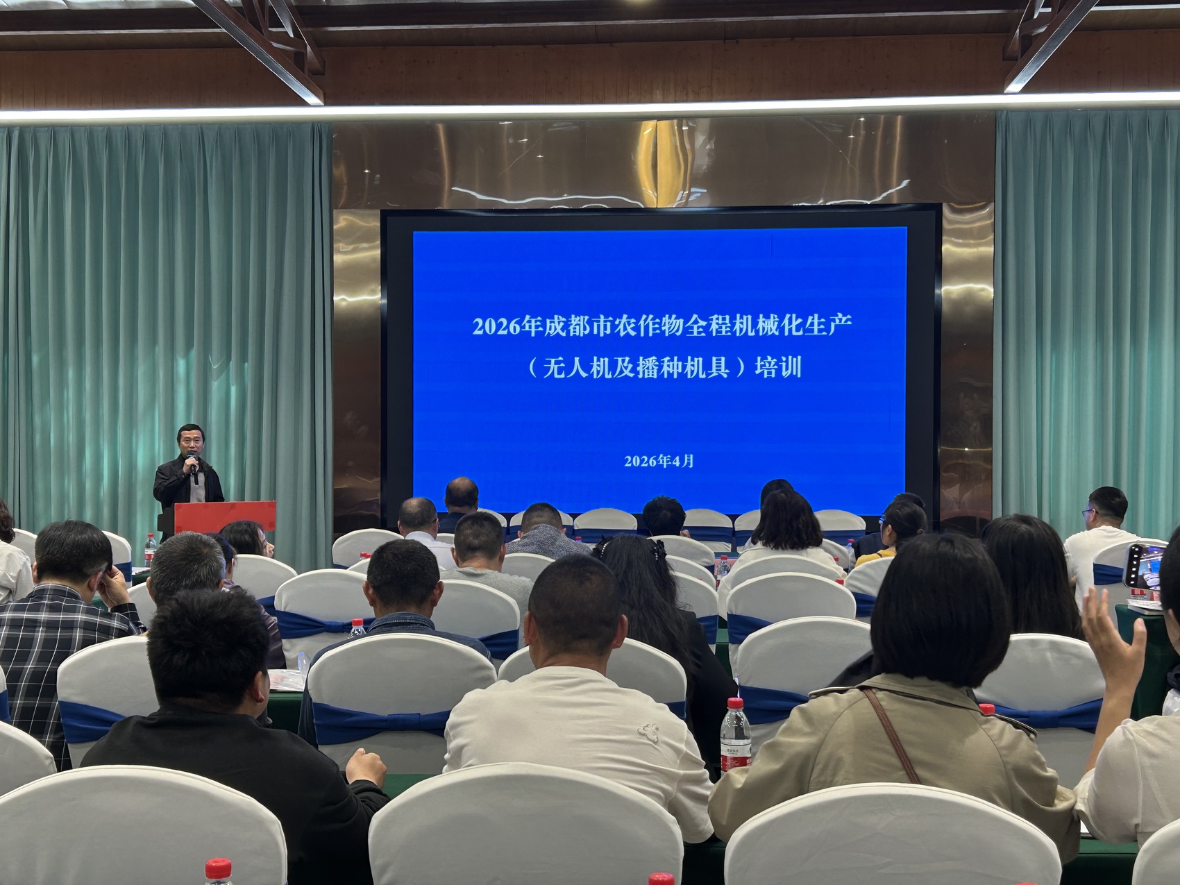 4月9日,阳光明媚。成都市郫都区安德街道云凌村,聚满了四川各地种粮大户、农业专家、农机服务主体等一线“三农”工作者,这里是2026年成都市农作物全程机械化生产(无人机及播种机具)培训活动现场。