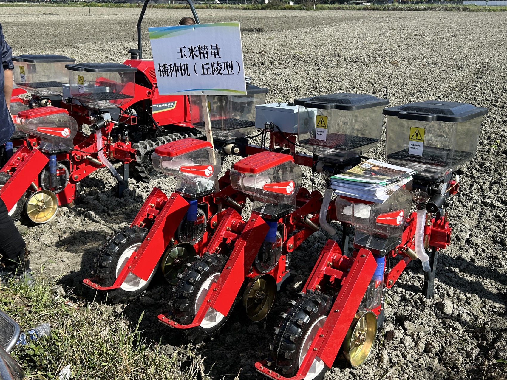 现场展示的玉米精量播种机。