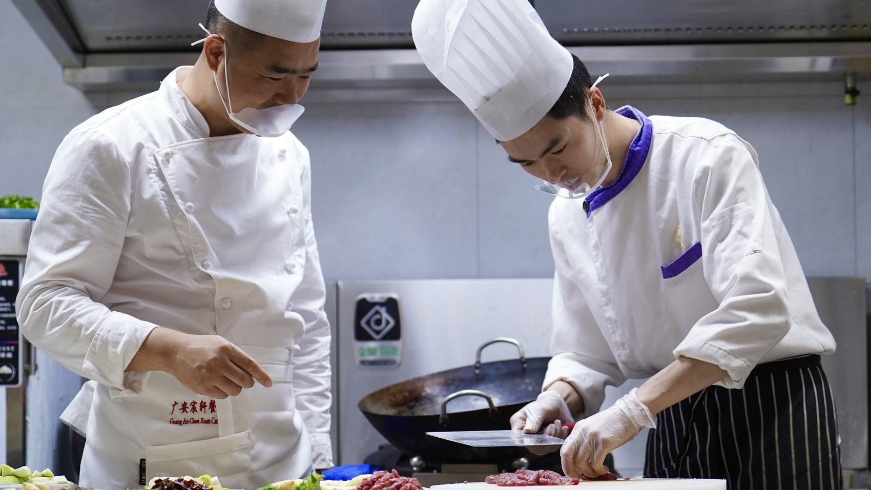在广安市邹德军技能大师和工匠人才创新工作室,创始人邹德军正在指导青年学员练习厨艺。(胡力文 摄)