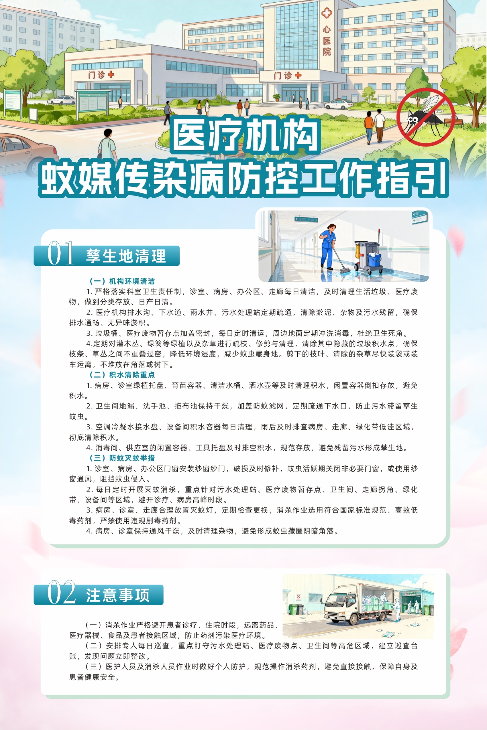 点击蚊媒传染病防控工作指引图,即可查看各类场所科学防蚊灭蚊全攻略,轻松远离蚊扰、守护健康。
