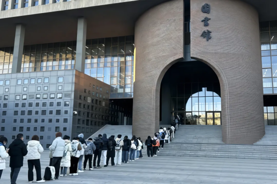 是清晨在图书馆门前等开门的人