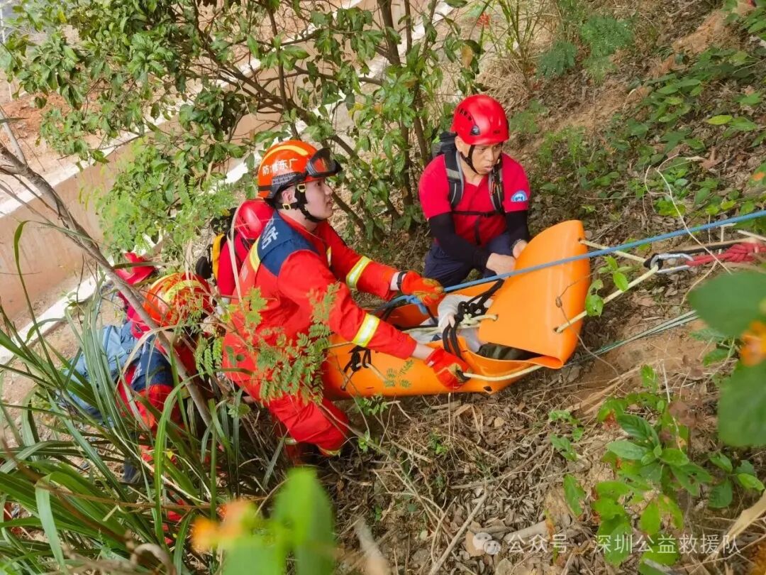 11:00,在消防人员、梧桐山管理处工作人员赶往救援现场同时,深圳120获悉,深圳公益救援队有一支队伍正在附近训练,立即请该支队伍进行增援。