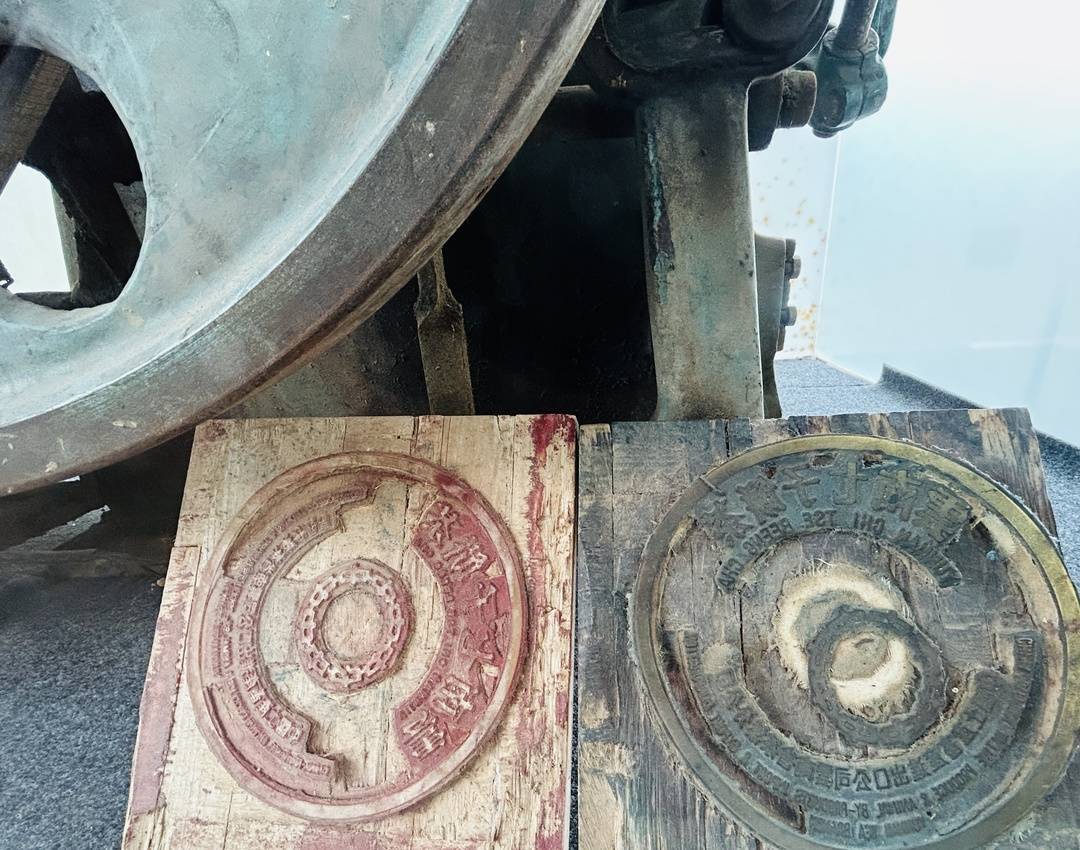 勐海县贺开古茶园收藏的制茶模具,可看到“七子饼”字样。封面新闻记者卢荡摄影