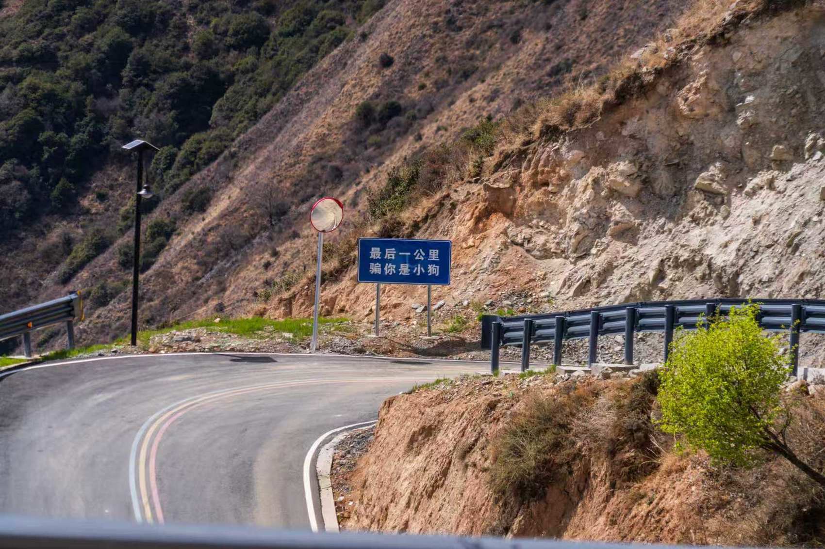 “最后一公里,骗你是小狗”路牌。 金川县融媒体中心供图