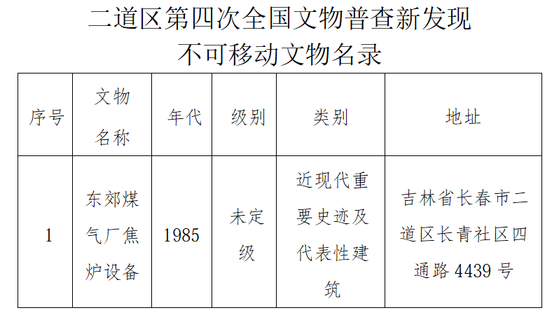 附件:二道区第四次全国文物普查新发现不可移动文物名录