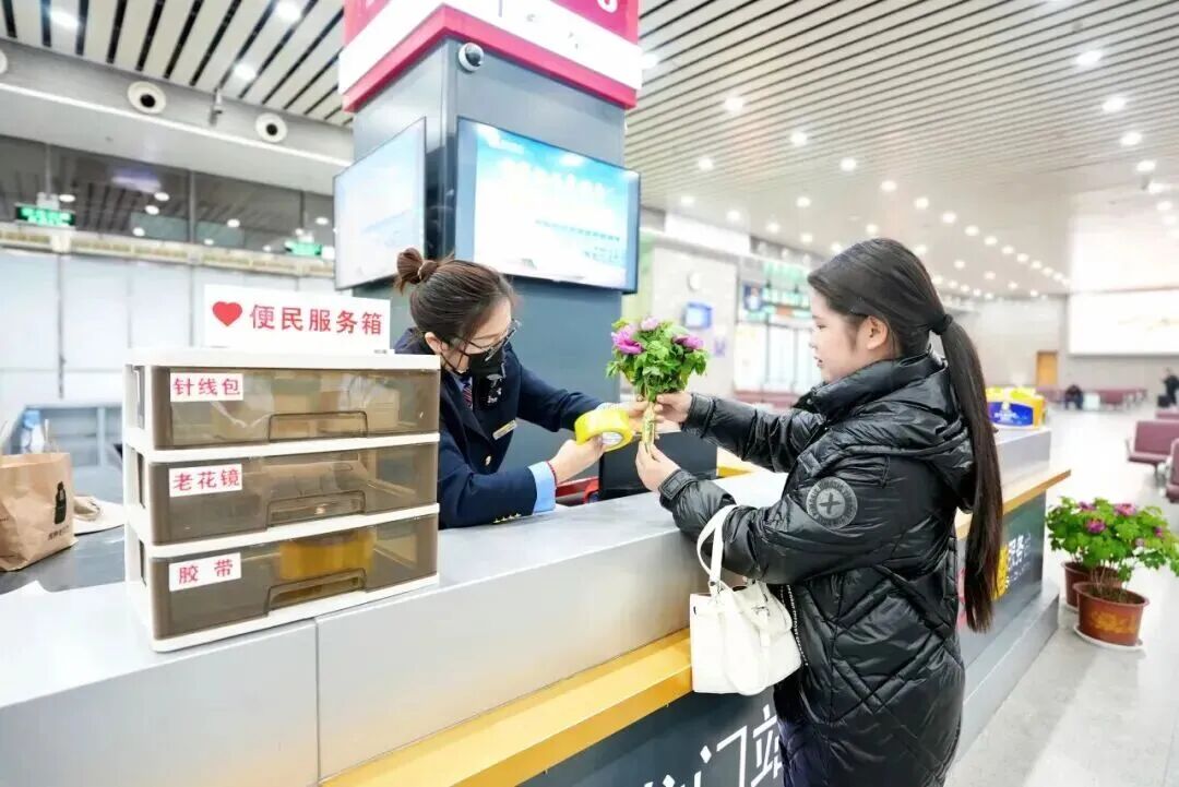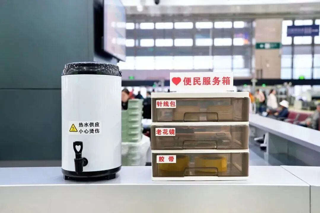 洛阳龙门站在“天香”服务台、重点旅客候车区配备便民服务箱,增加针线包、老花镜、胶带等应急小物件;在扶梯入口加装防倚靠装置;在检票口附近划定轮椅专用停放区域,引导旅客有序停放,保障通道畅通。