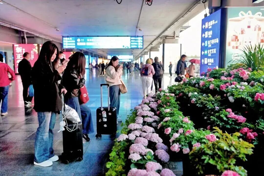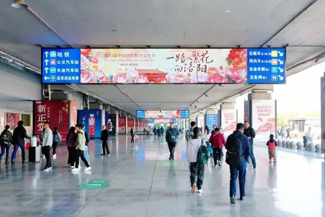 洛阳龙门站、洛阳站在候车厅及出站口精心布置牡丹盆景“微景观”和“一路繁花向洛阳”拍照打卡点,在天桥显示屏设置“洛阳春日最繁花、古韵今风共交融”迎客标语,让旅客不出站就能欣赏花景。